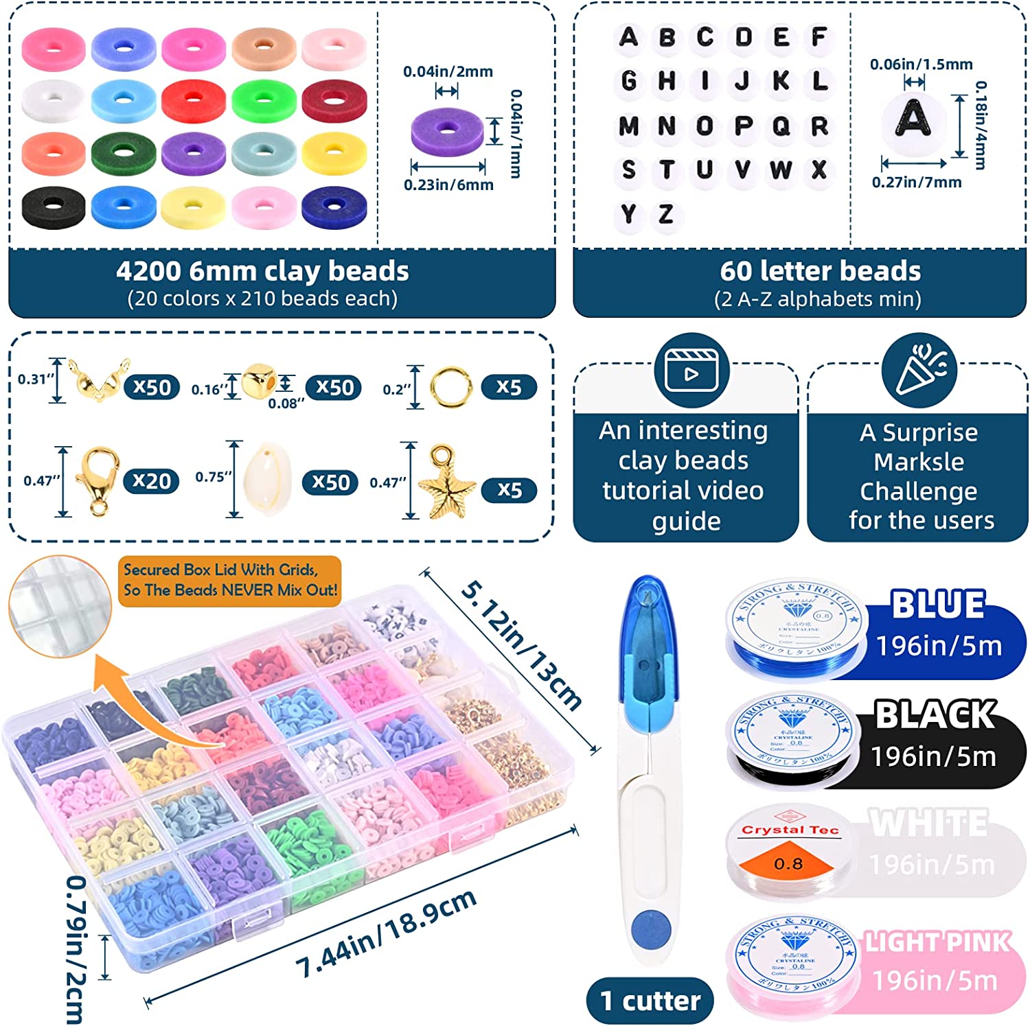 4200 x 6mm clay beads (20 colors x 210 beads each)