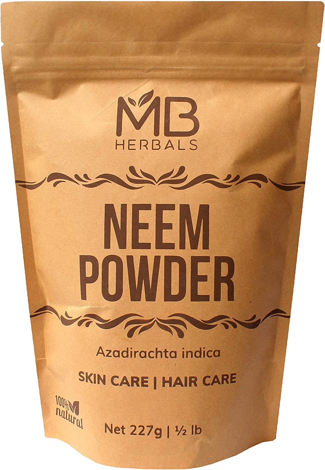 MB Herbals Pure Neem Powder 8 oz | 227 Gram / 0.5 LB Pure Wild-Crafted Neem Leaf Powder | Very Bitter Neem Supplement for Skin Hair & Detox | Azadirachta Indica - Packaging May Vary