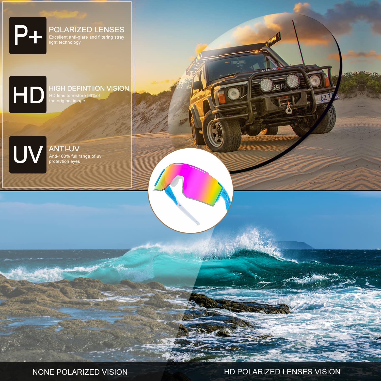 Men and Women Vipers Sunglasses, Cycling UV400 Anti-Ultraviolet Sports Outdoor Sunglasses