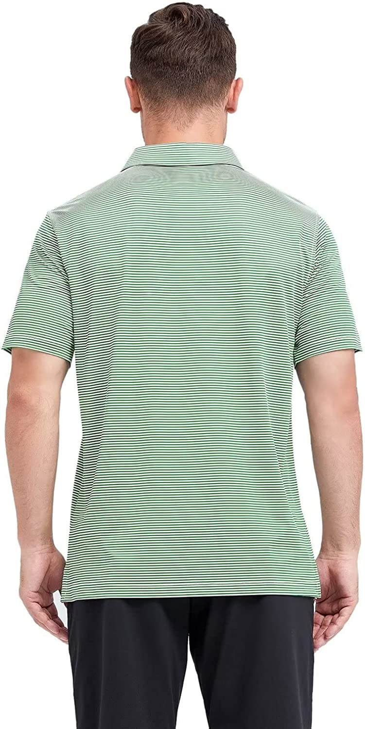 Mens Golf Shirt Moisture Wicking Dry Fit Performance Sport Short Sleeve Striped Golf Polo Shirts for Men