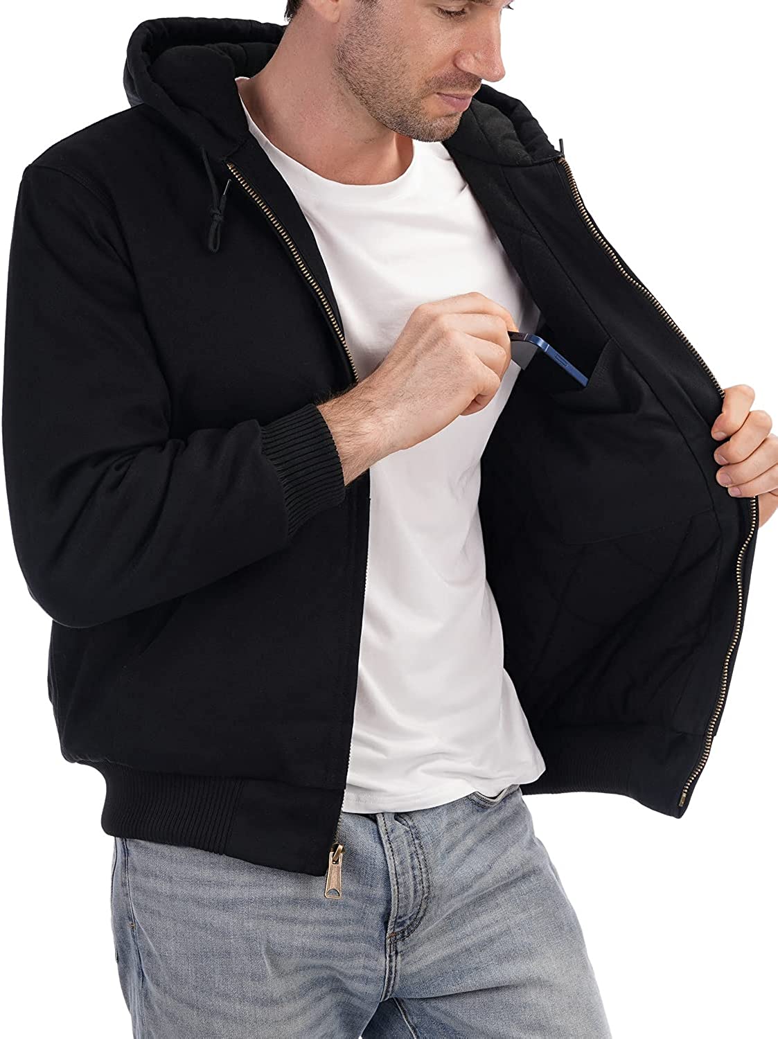 Men's Quilted Flannel Lined Active Jacket Waterproof Cotton Duck Hooded Workwear Winter Coat