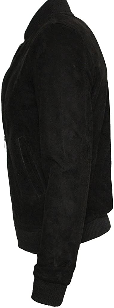 Mens Retro Black Goat Suede Leather Bomber Varsity Jacket