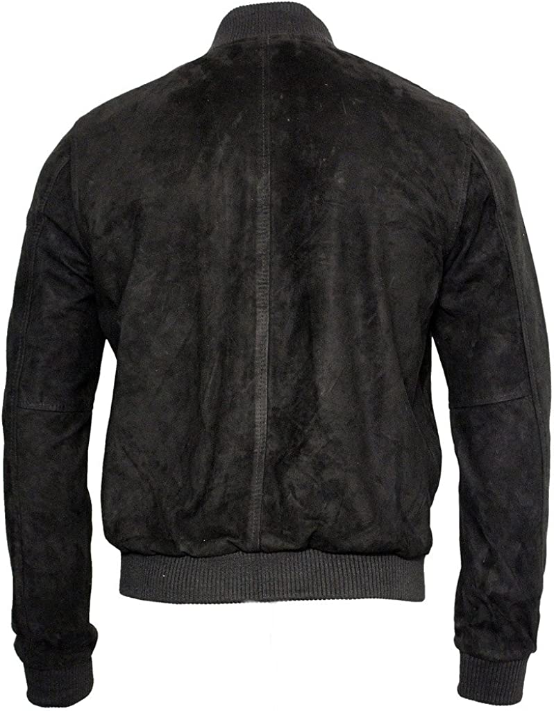 Mens Retro Black Goat Suede Leather Bomber Varsity Jacket