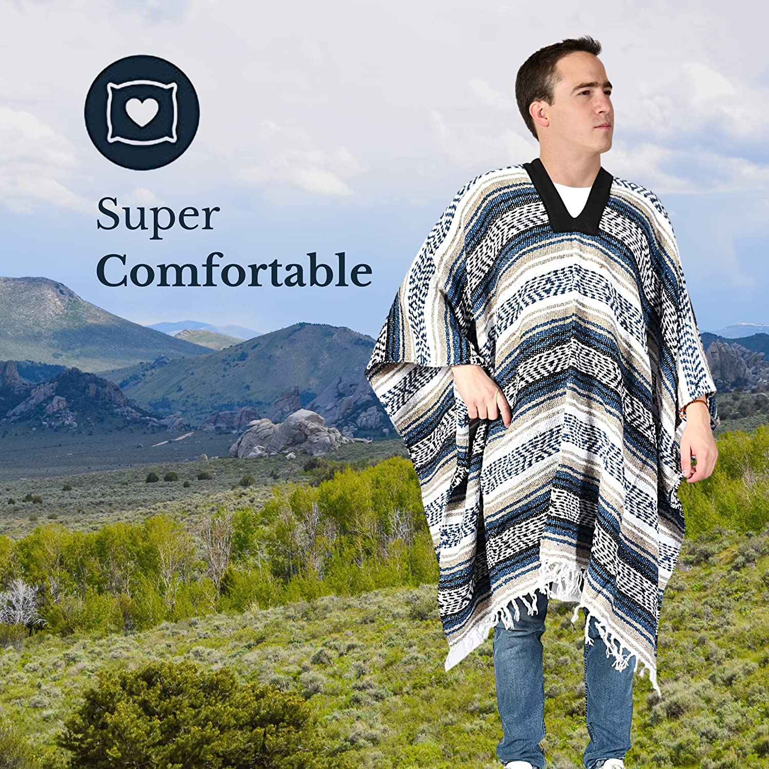 Mexican Baja Poncho 100% Warm And Comfortable Sarapes Mexicanos Winter Coat
