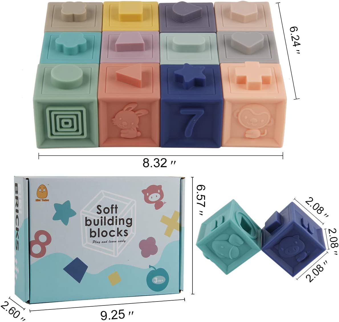 Mini Tudou Baby Blocks Soft Building Blocks Baby Toys Teethers Toy Educational Squeeze Play with Numbers Animals Shapes Textures 6 Months and Up 12PCS