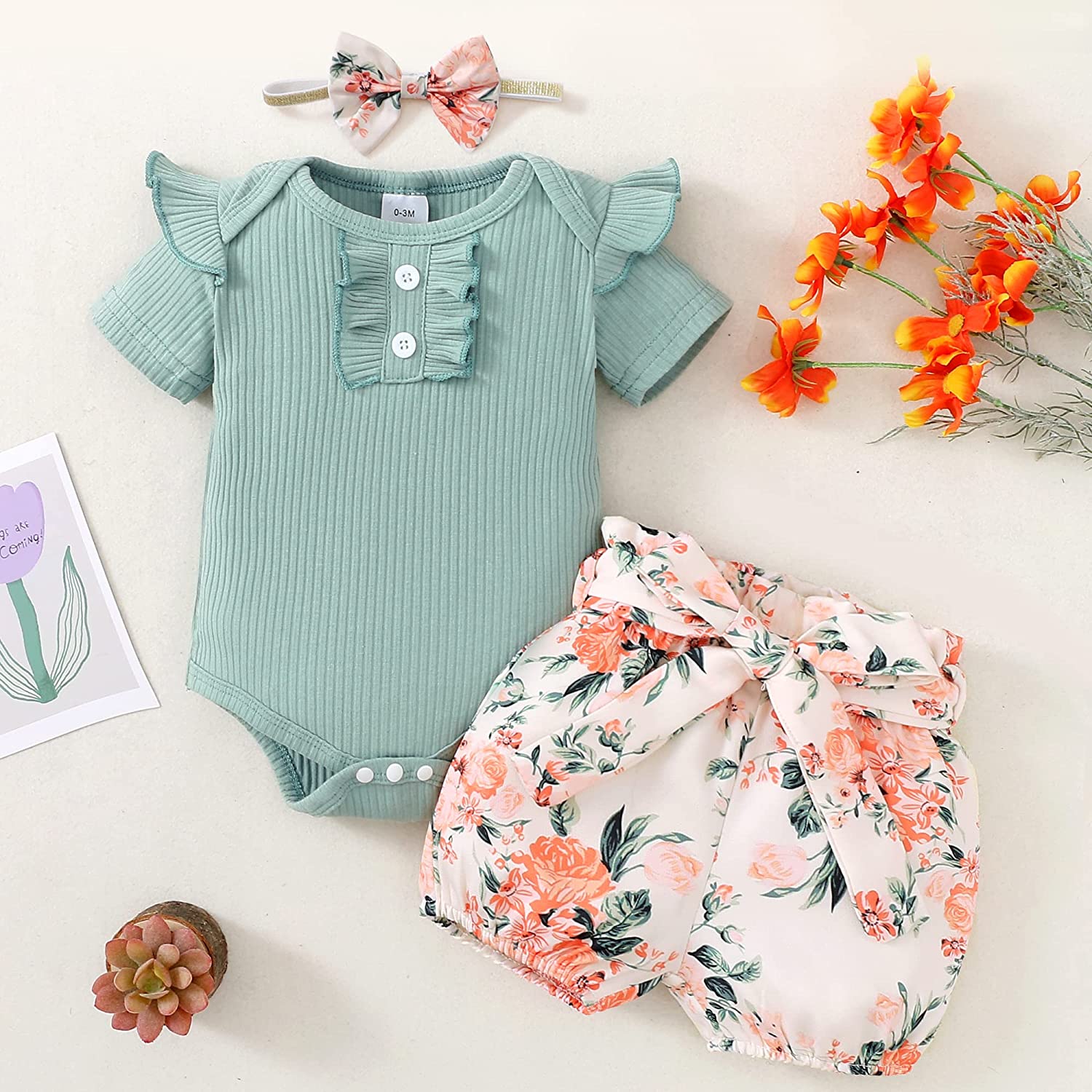 Mioglrie Newborn Baby Girl Clothes Romper Shorts Set Cute Infant Summer Outfits Cotton Baby Clothes for Girls