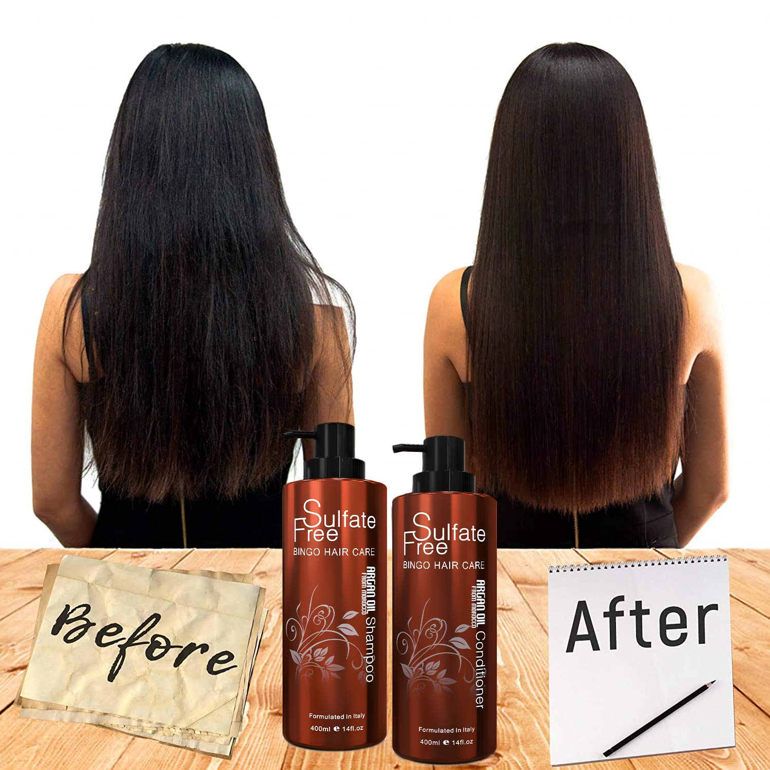 Moroccan Argan Oil Sulfate Free Shampoo and Conditioner Set - Best for Damaged, Dry, Curly or Frizzy Hair - Thickening for Fine/Thin Hair, Safe for Color-Treated, Keratin Treated Hair