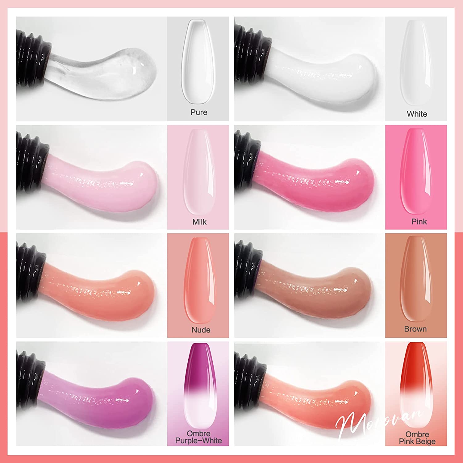 Morovan Poly Gel Nail Kit for Nails with 48W LED Nail Lamp Nail Extension Gel 8 Pcs 0.5oz with Other Basic Poly Gel Nail Art Tools Poly Nail Gel Kit Nail Art Supplies