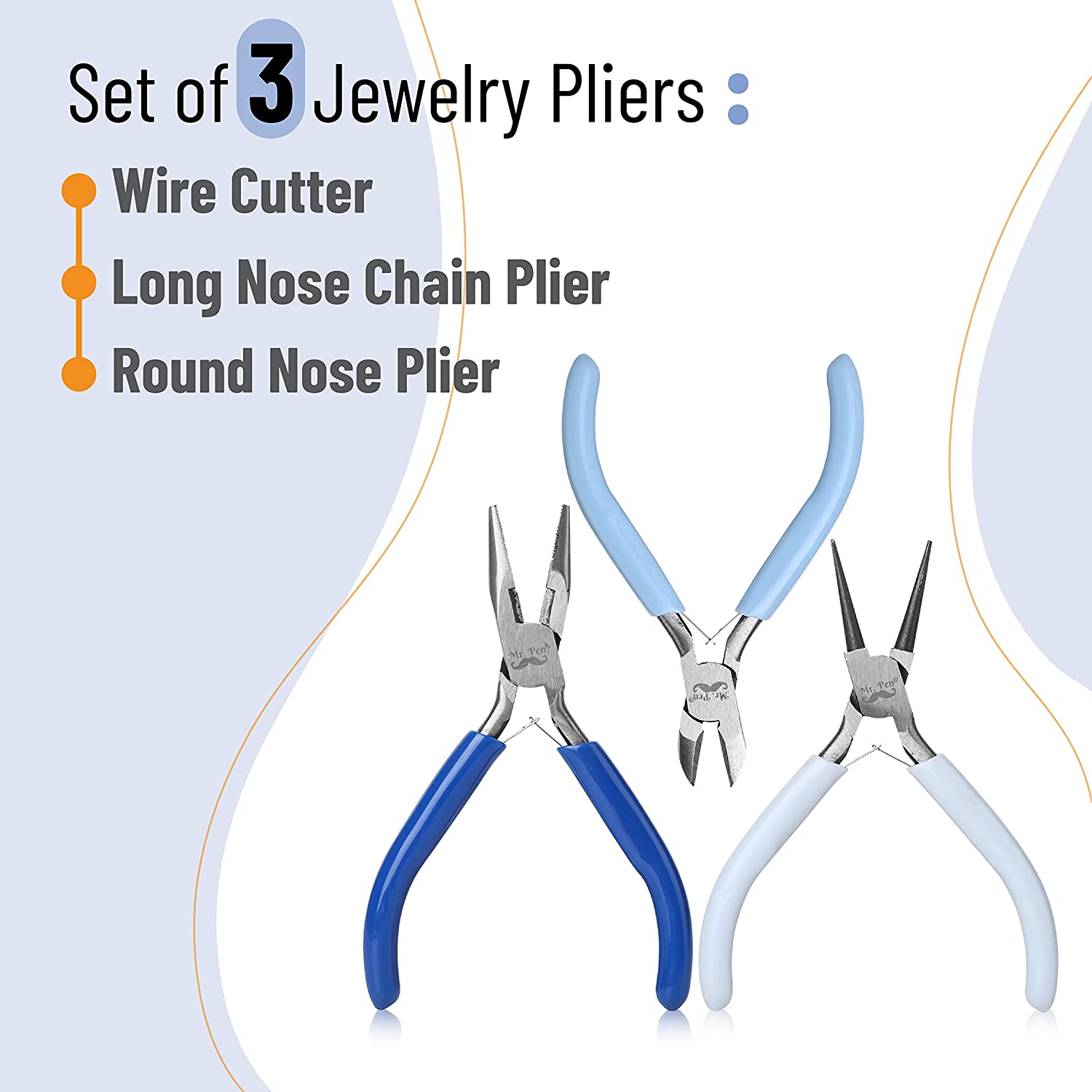 Mr. Pen- Jewelry Pliers, 3 Pack, Jewelry Making kit, Pliers for Jewelry Making, Mini Pliers, Wire Cutters for Jewelry Making, Chain Nose Pliers, Craft Pliers, Earring Pliers