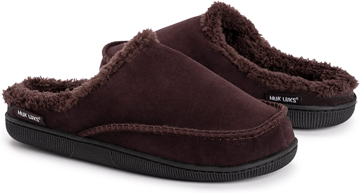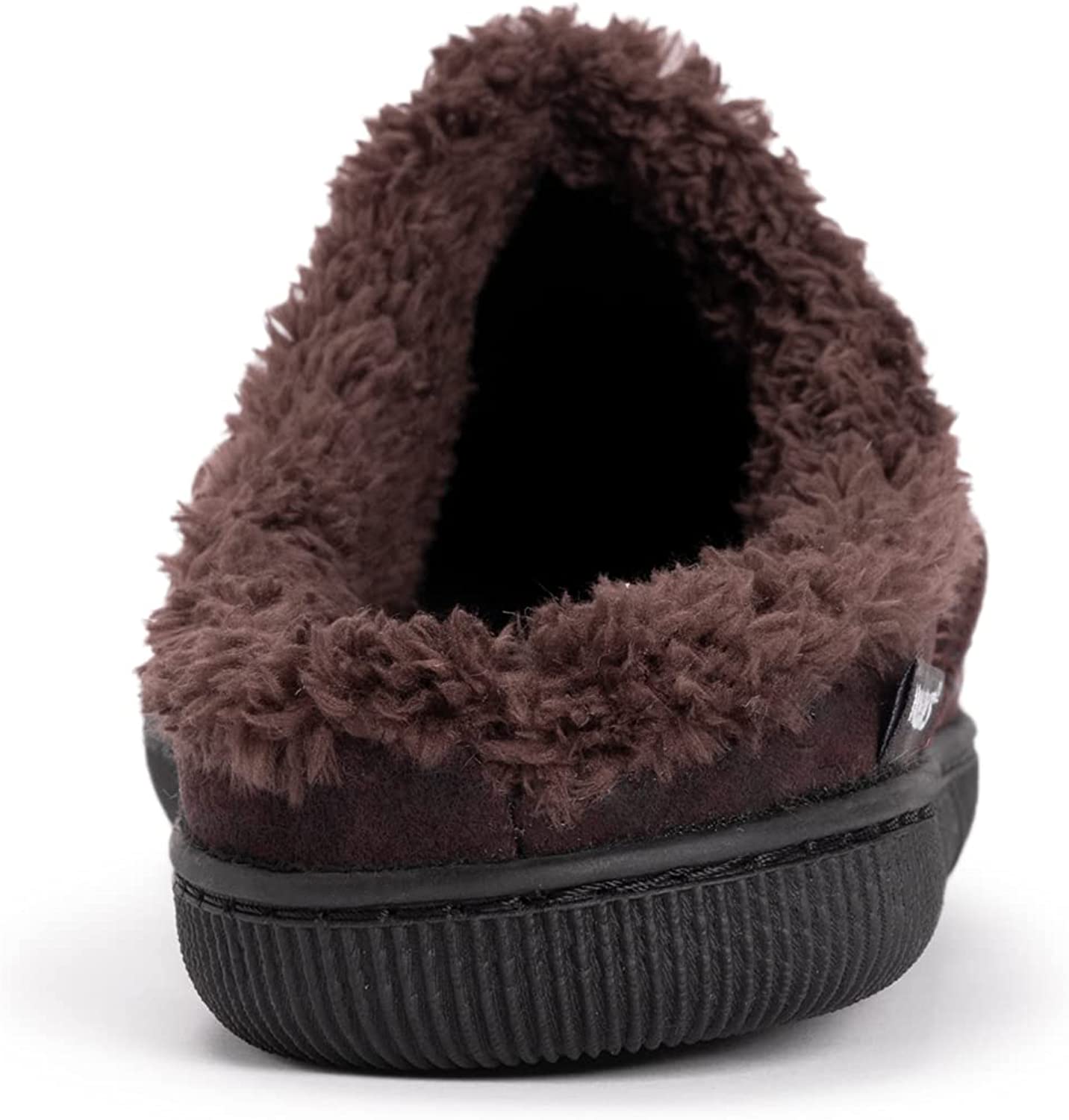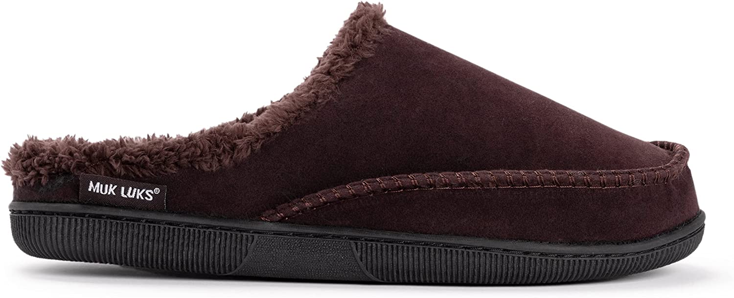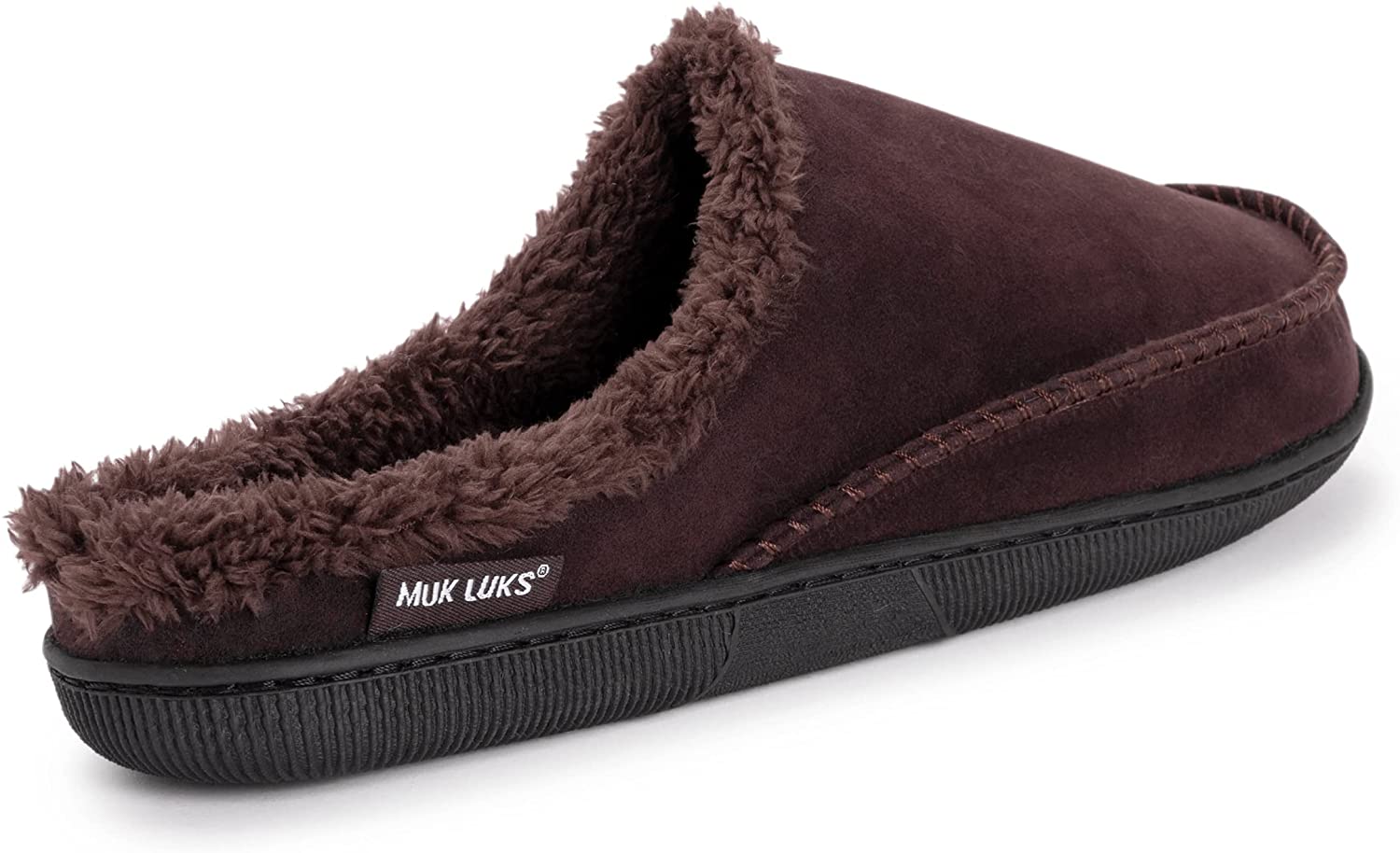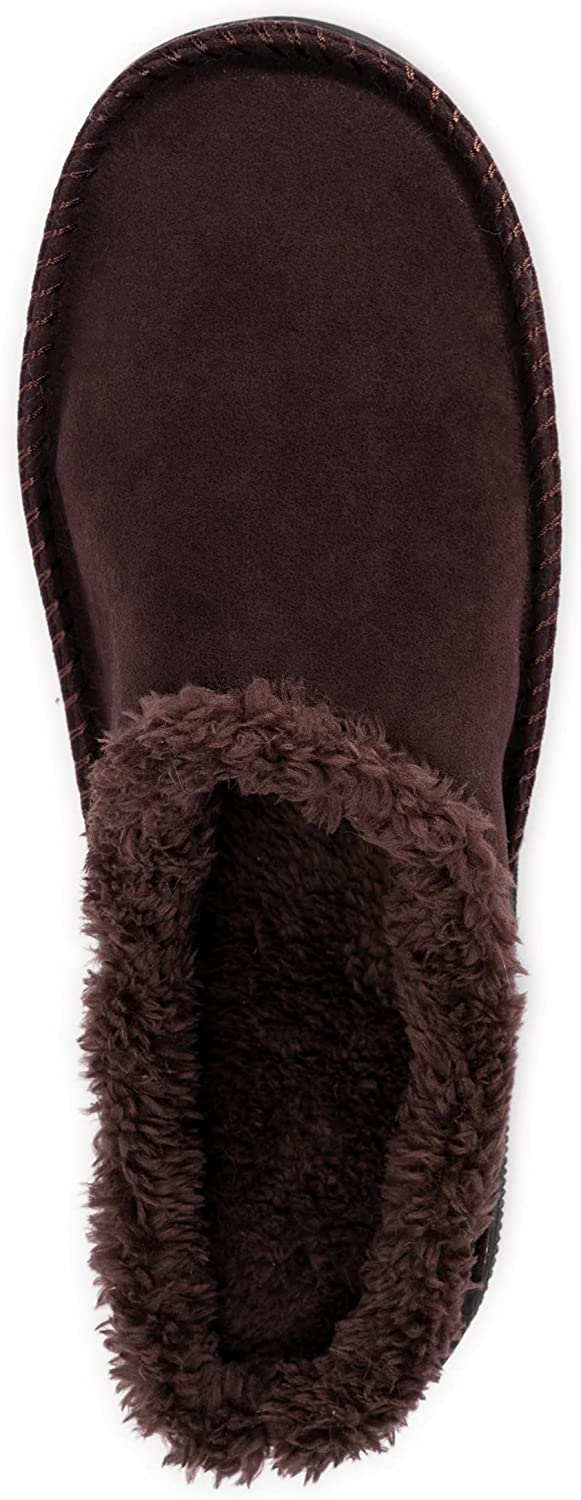 Men's Faux Suede Clog Slippers comfortable sweater knit body keep your feet warm and cozy around the house (or running errands - we won’t tell). Hand wash in cold water, no bleach, dry flat. Imported.
