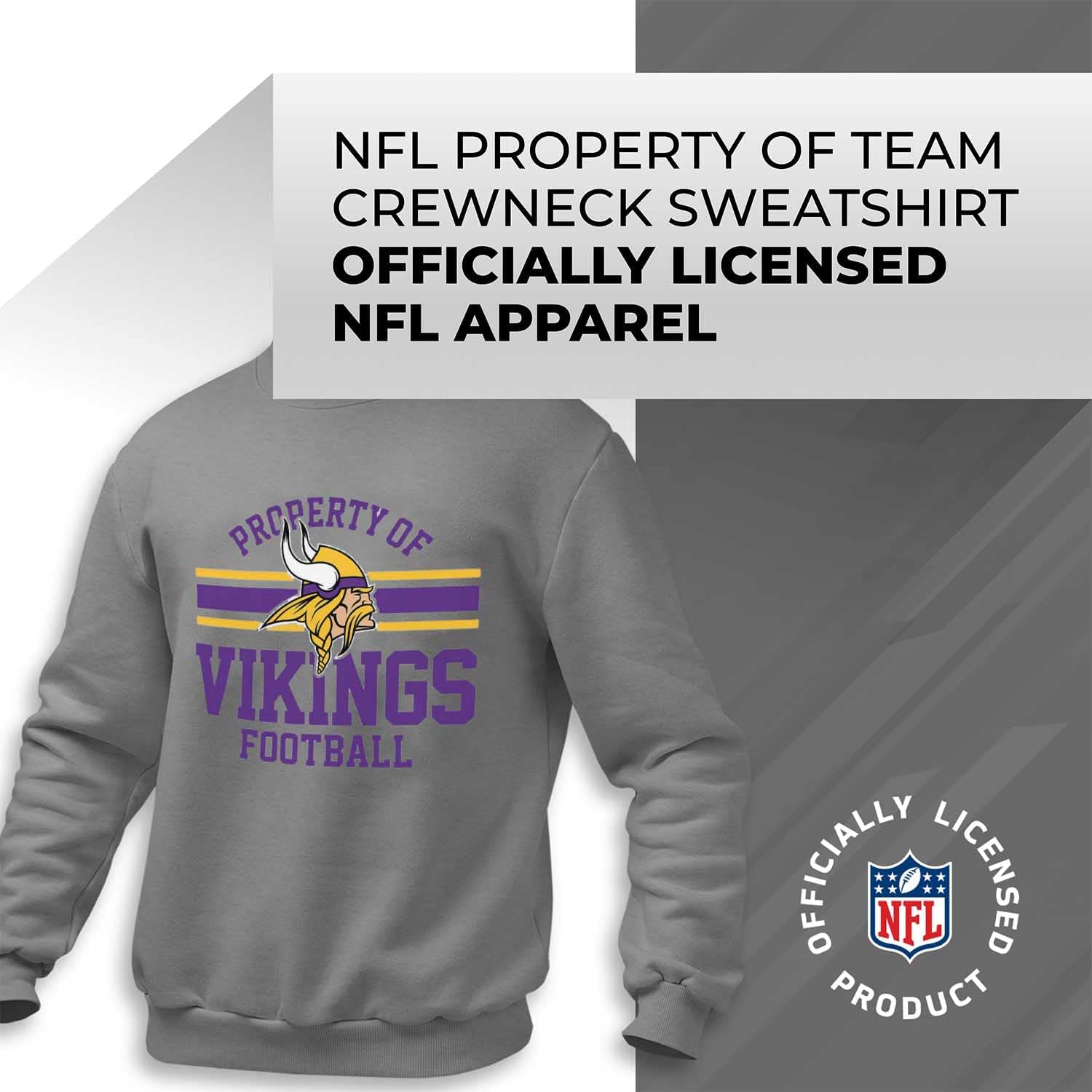 This Property of pullover crewneck sweatshirt is a cold-weather friendly jacket made from 50% ringspun cotton and 50% polyester. Our mens and womens football sweater is super comfortable, runs true to size, and is great for showing your team pride all year long. This comfy crewneck features the official Property of graphics will stay crisp and wear after wear and year after year. All colors and fonts are officially licensed and are of the highest of quality. These crew neck sweatshirts are made with air jet yarn for a softer feel and reduced pilling. This tagless crewneck sweatshirt is perfect for tailgates, games, and showing off your team spirit. Our pullover crewnecks are ideal gifts for men and women football fans. The unisex fit of our crewneck is ideal for both men and women. This crewneck is essential apparel for protecting yourself from the elements at a football game. The fleece material, ribbed cuffs, and waistband keep all the warmth in, which means there's no need for an extra jacket in the fall months– our crew neck sweaters have you covered. This Property of sweatshirt crewneck pullover is pre-shrunk and is ideal for that tailgate or game day when the temperature drops. Our crewneck pro football sweatshirts for women and men help you gear up and get ready to cheer the to victory.