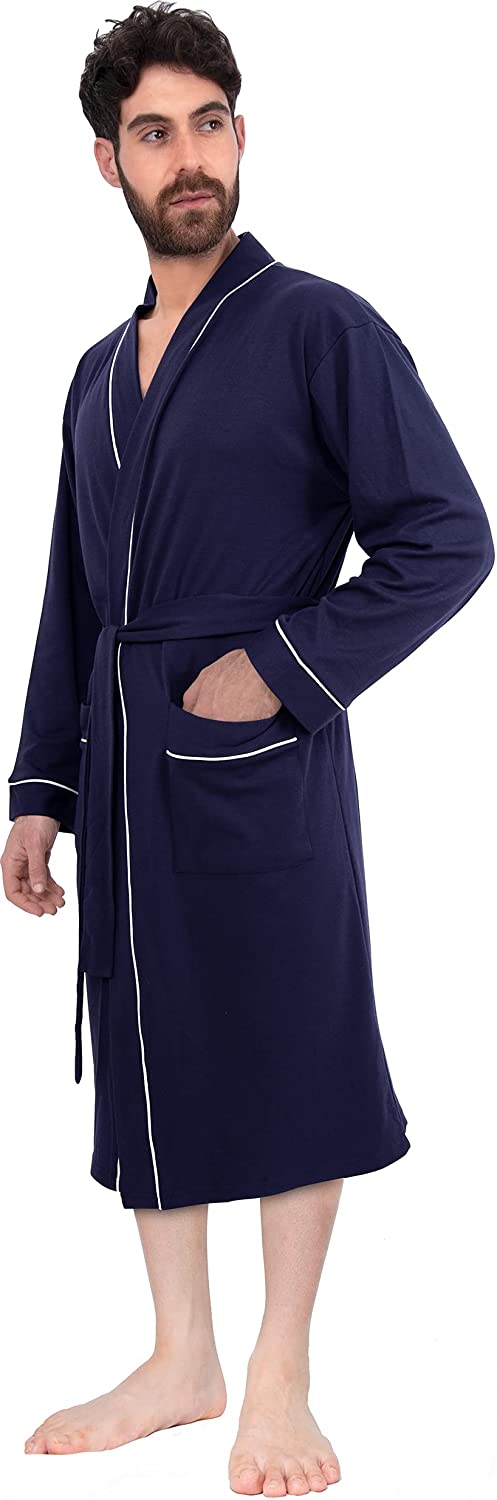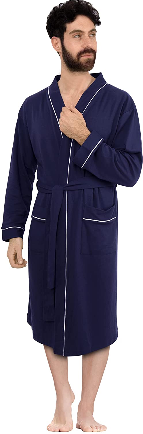 NY Threads Mens Knit Robe Lightweight Summer Cotton Blend Bathrobe