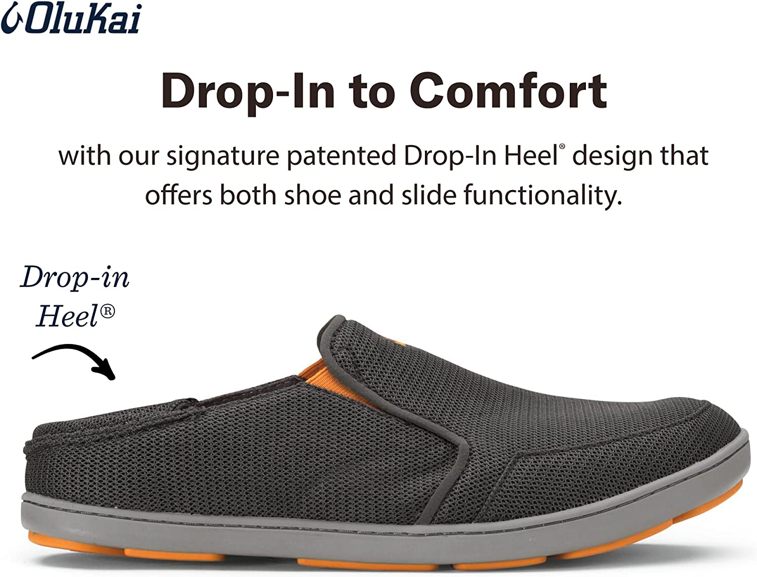 OLUKAI Nohea Mesh Men's Slip On Sneakers, Lightweight Barefoot Feel & Breathable All-Weather Shoes, Drop-in Heel & Comfort Fit