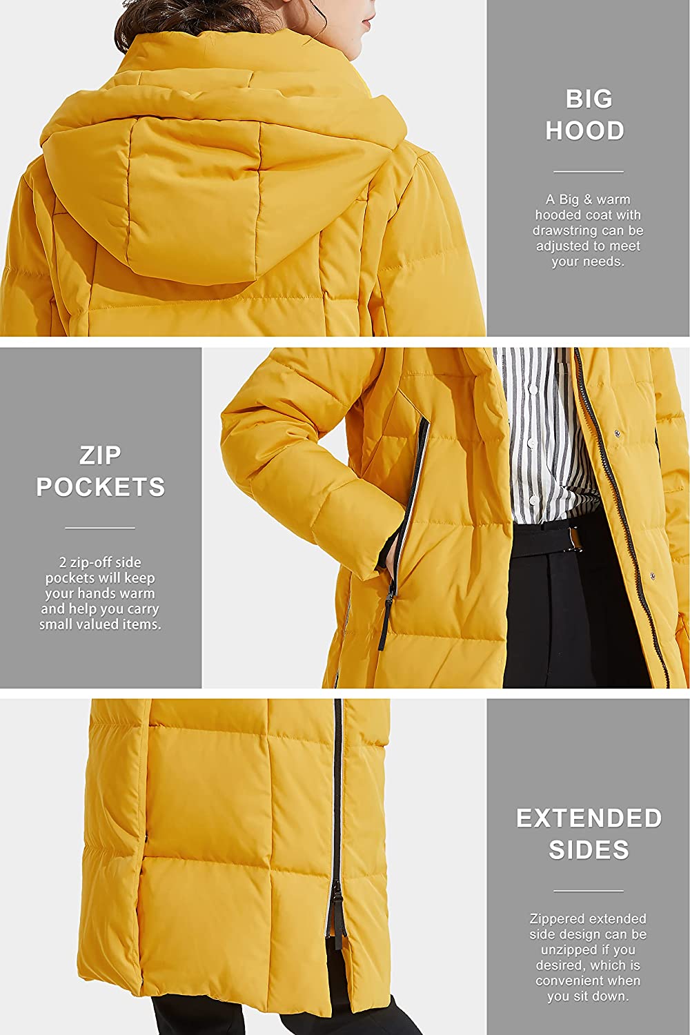 Orolay Women's Thickened Down Jacket Long Winter Coat Hooded Puffer Jacket