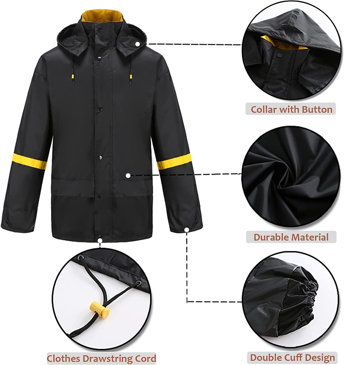 Ourcan Rain Suits for Men Classic Rain Gear Waterproof Rain Coats Hooded Man's Rainwear Fishing Rain Jacket and Rain Pants