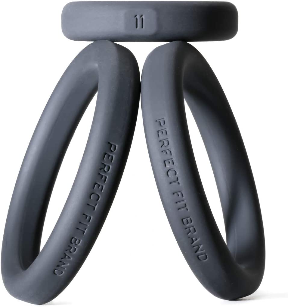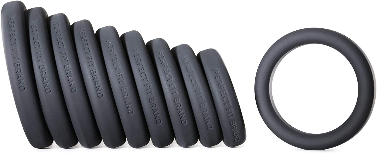 PerfectFit Brand Xact-Fit Play Zone Cock Ring Kit, Stackable, Silicone, Multiple Sizes, Firm Fit, Durable, Set of 9 Rings with Sturdy Storage Cone
