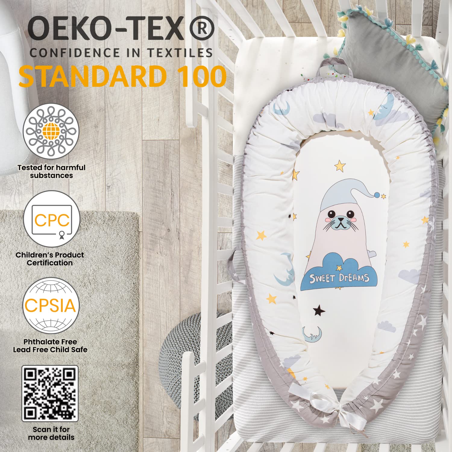Pillani Baby Lounger - Baby Nest for 0-12 Months, Breathable Co Sleeper for Baby, Newborn Lounger for Cosleeping in Bed - Sleep Portable Bassinet, Newborn Essentials Infant Pillow (Seal)