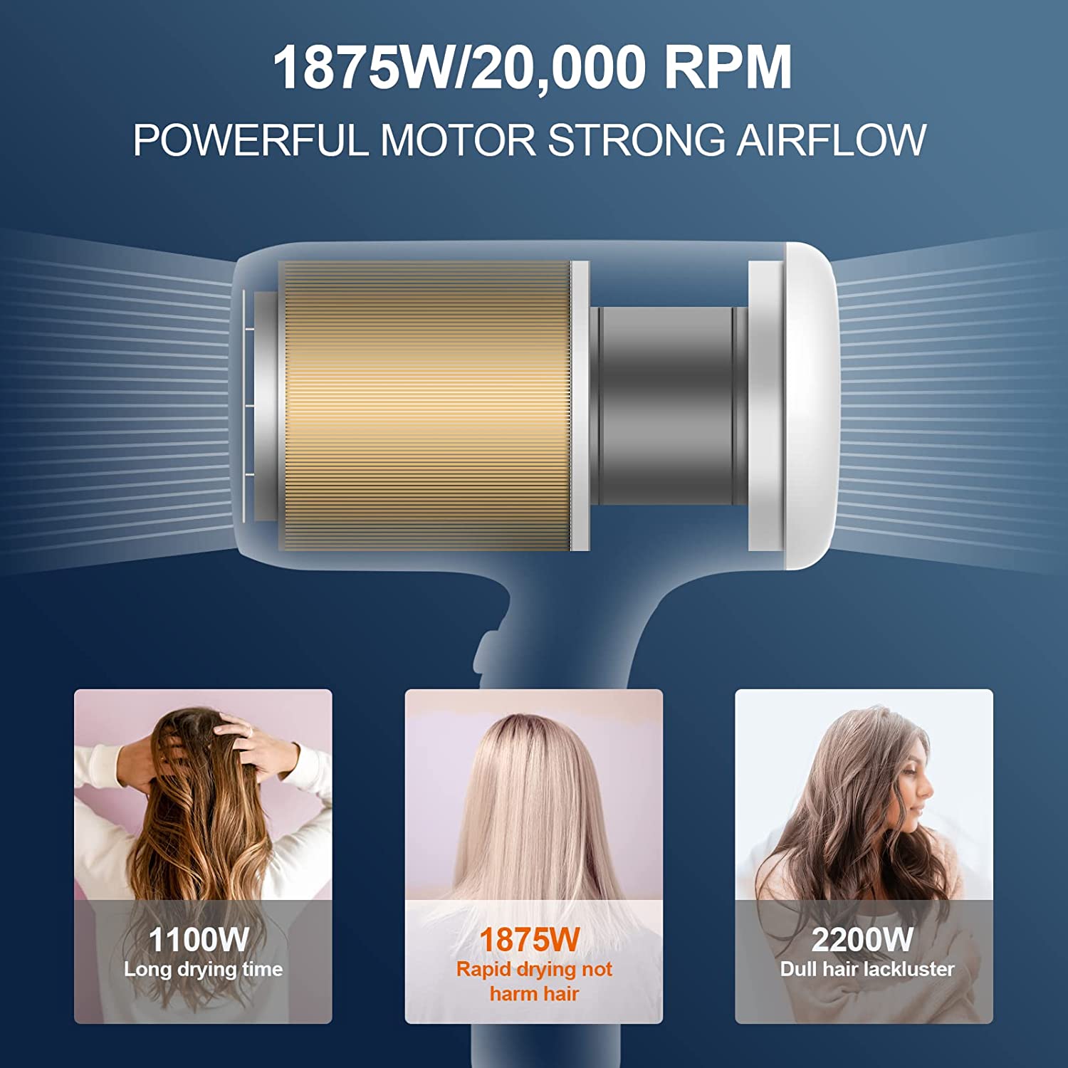 Professional Ionic Hair Dryer with Diffuser, DOOAIR 1875W Blow Dryer, Ionic Hair Dryer with Diffuser, Travel Hair Dryer, Constant Temperature Hair Care (White)