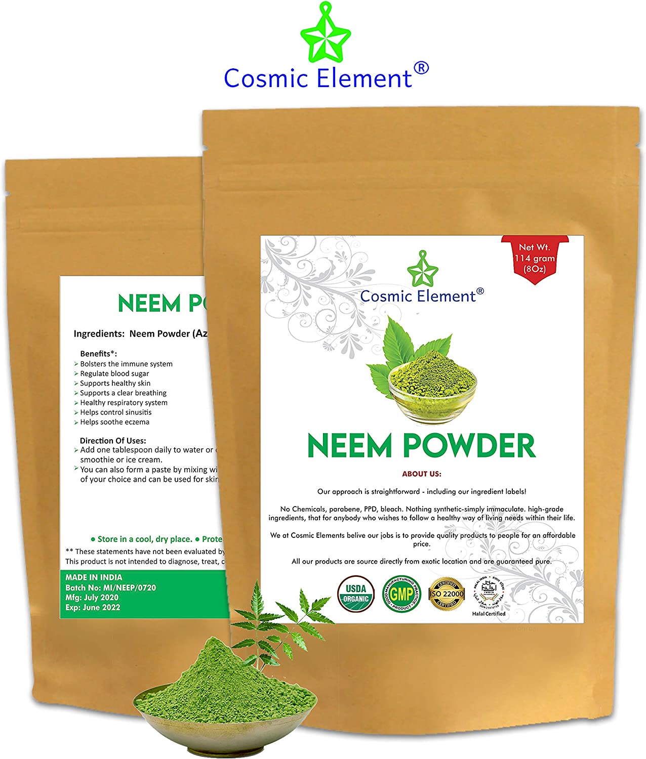Pure Neem Powder | Pure Wild Crafted Neem Leaf Powder | Very Bitter Neem Supplement for Hair, Skin, Nails and Detox - Azadirachta Indica (4 oz)