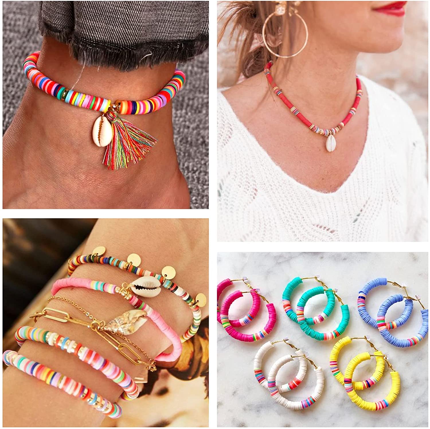 QUEFE 14420pcs Clay Beads for Bracelet Making Kit, 56 Colors Spacer Heishi Beads Flat Round Polymer Clay Beads with Pendant Charms Kits and Elastic Strings