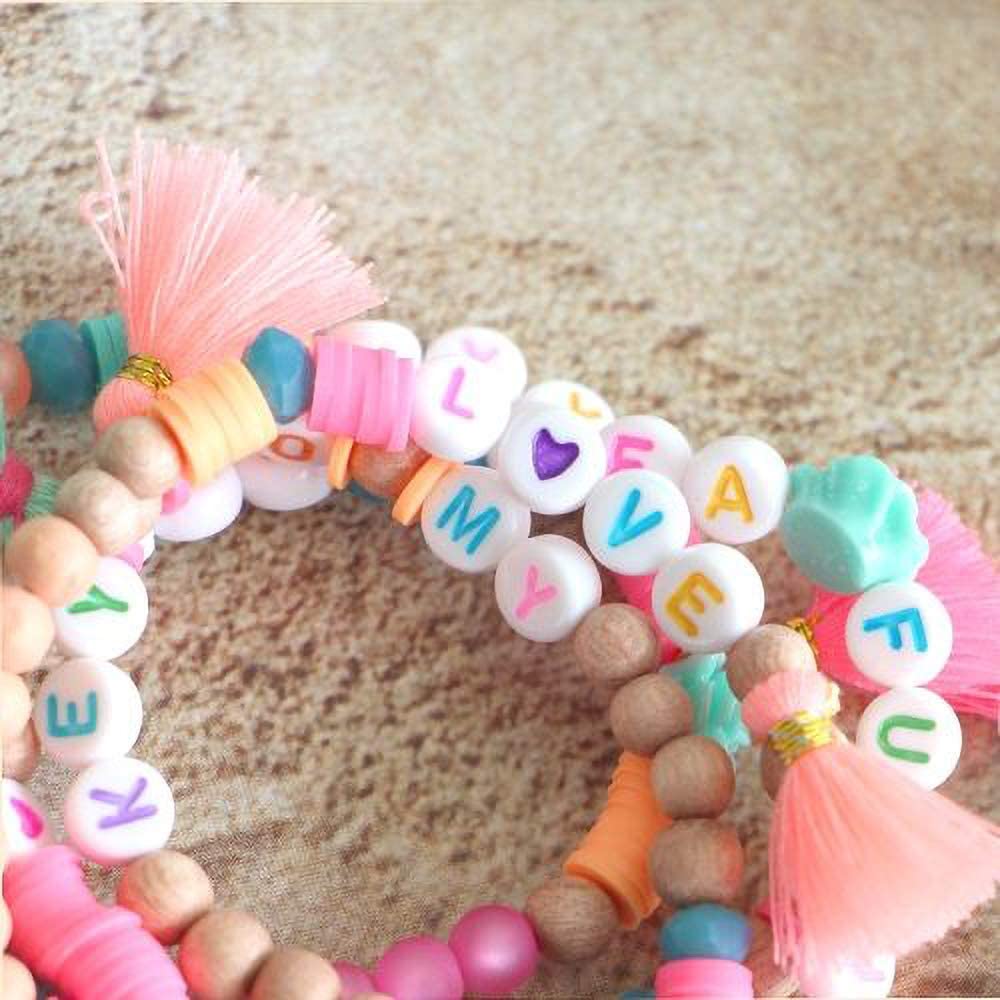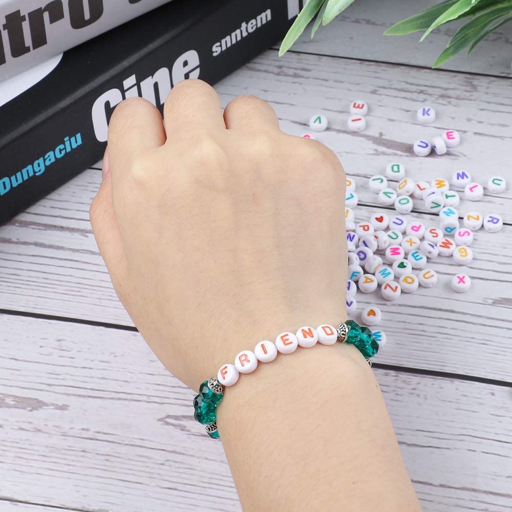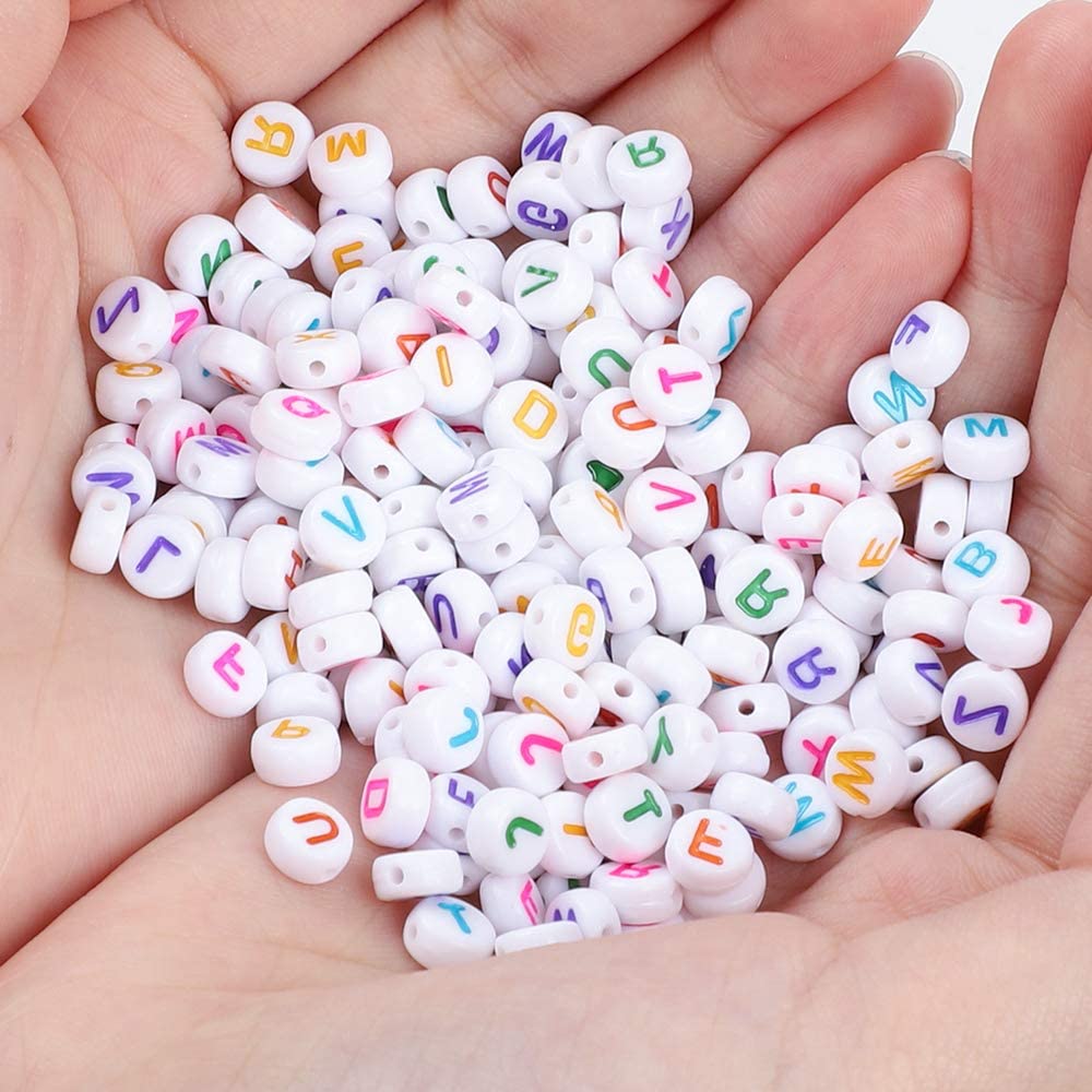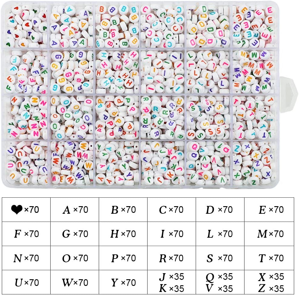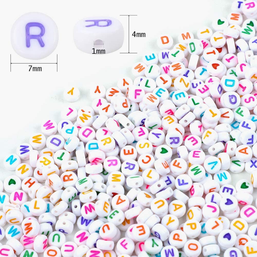 Quefe 1680pcs 4 x 7mm Letter Beads White Round Acrylic Colorful Alphabet Beads for Jewelry Making Bracelets Necklaces Key Chains, Each Letter Included