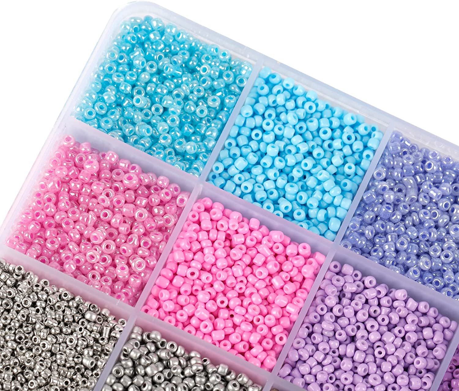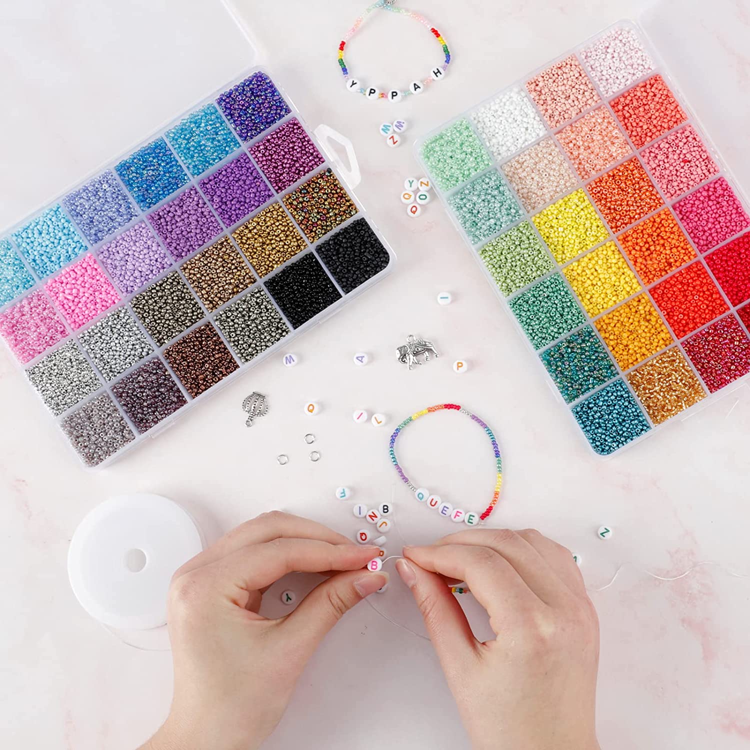 Quefe 36000pcs Glass Seed Beads 2mm Beads 48 Colors 12/0 Small Bracelets Beads and 260 Letter Beads for Jewelry Making Crafts