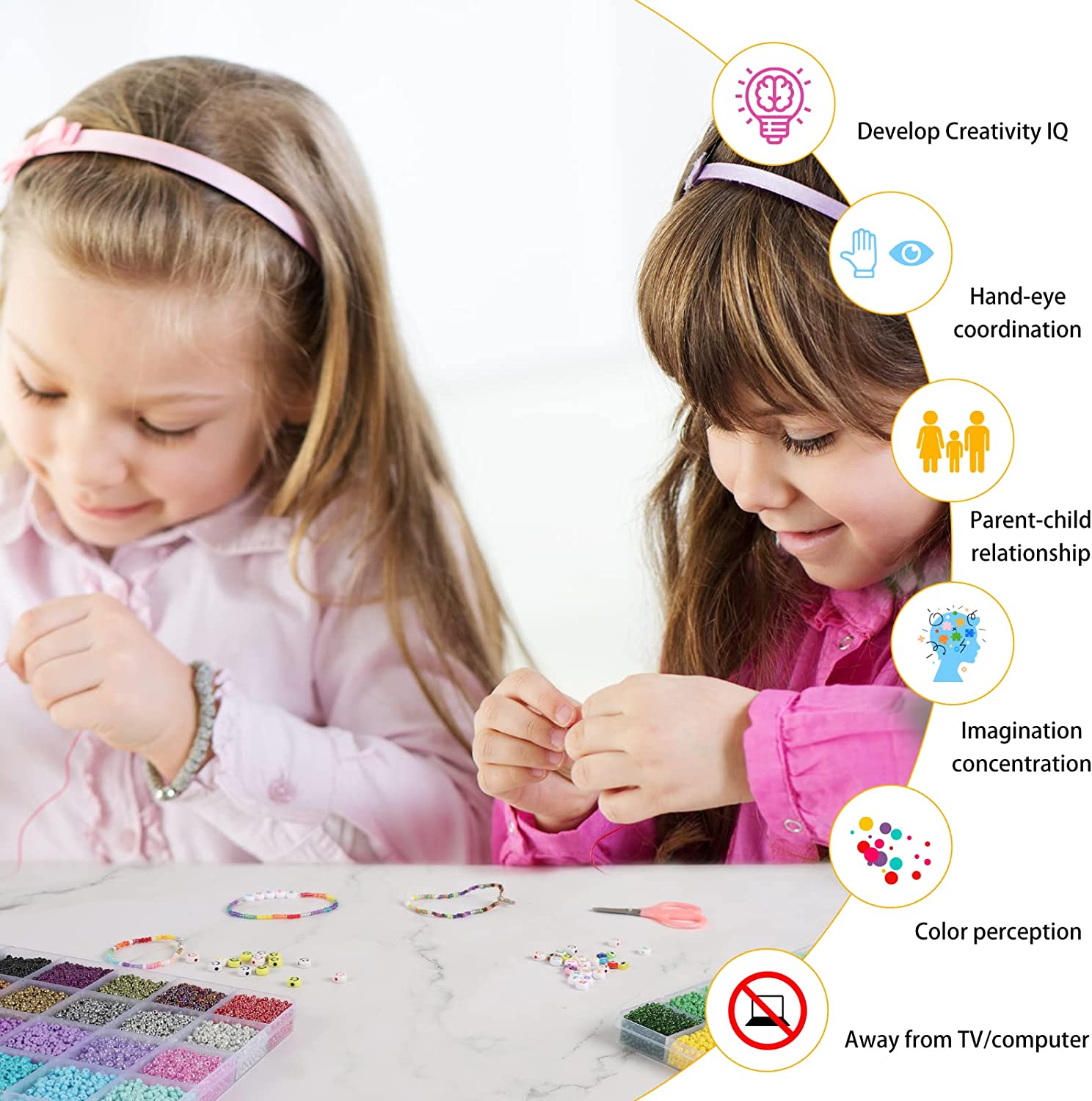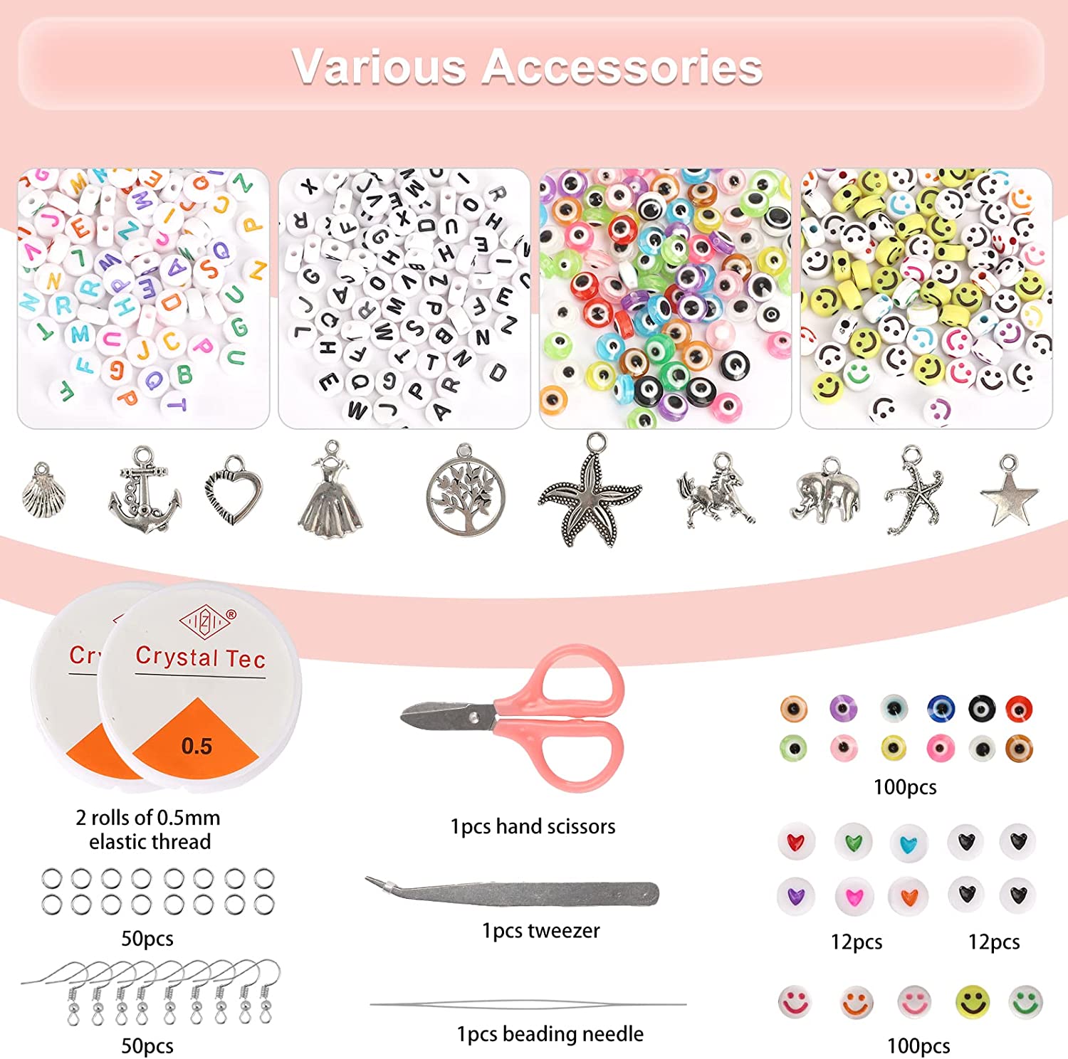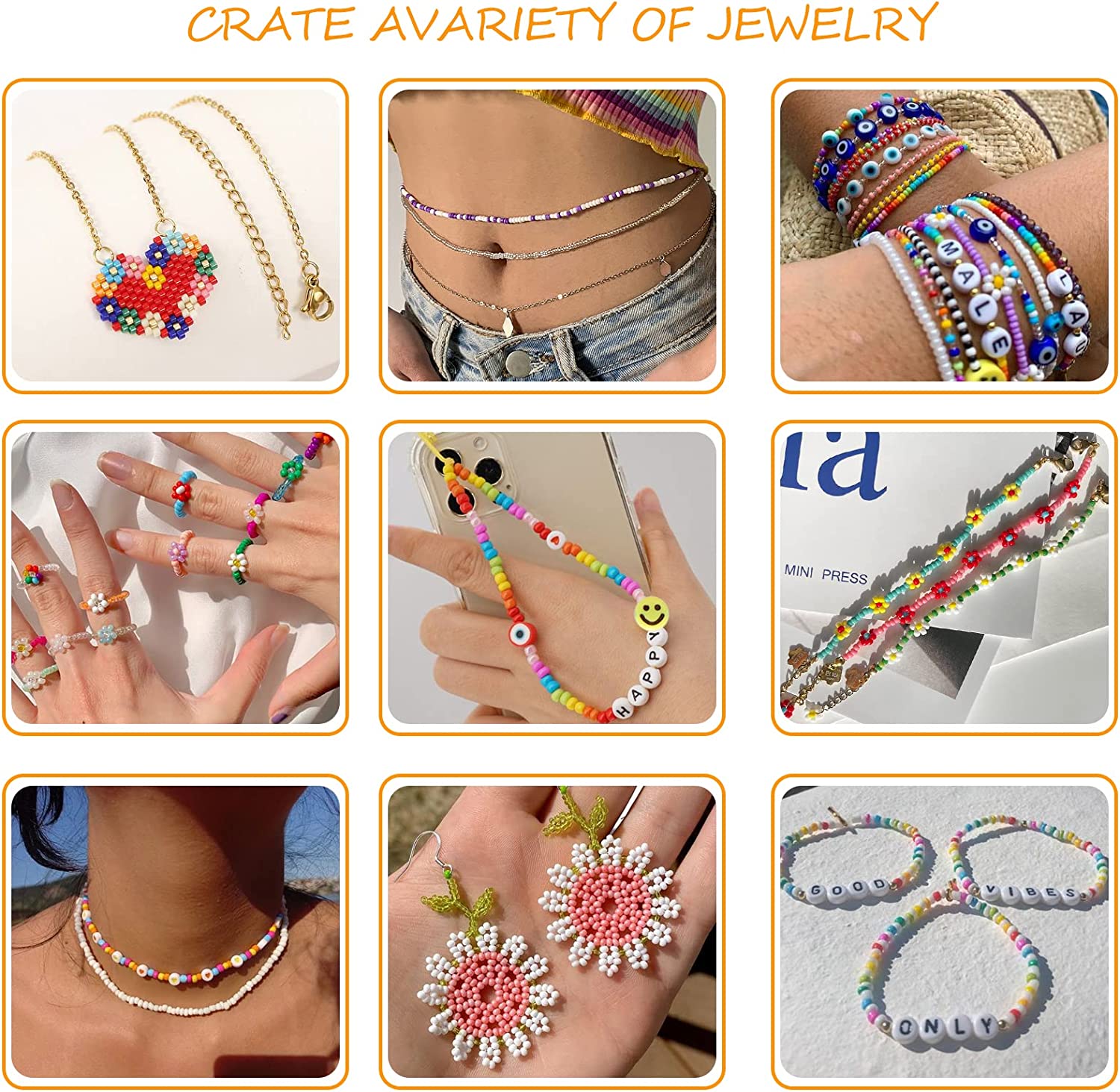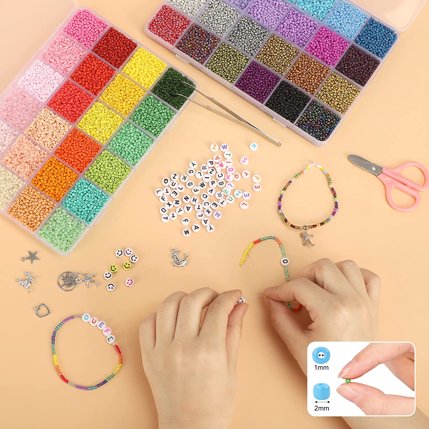QUEFE 40000pcs 2mm Glass Seed Beads for Jewelry Making Kit, 440pcs Letter Beads, 100pcs Smiley Face Beads & 100pcs Evil Eye Beads for Bracelets Necklace Ring Making, DIY, Art and Craft