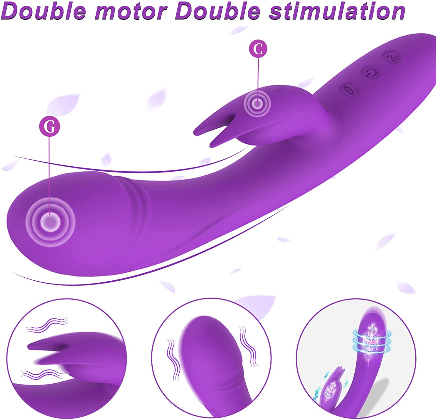 Rabbit Vibrator Sex Toys for Women, LUGAGA G Spot Rose Vibrator Dildo with 10 Vibrations and One-Click Enhanced Mode, Powerful Dual Motors Clitorals Stimulator for Women or Couple(Purple)