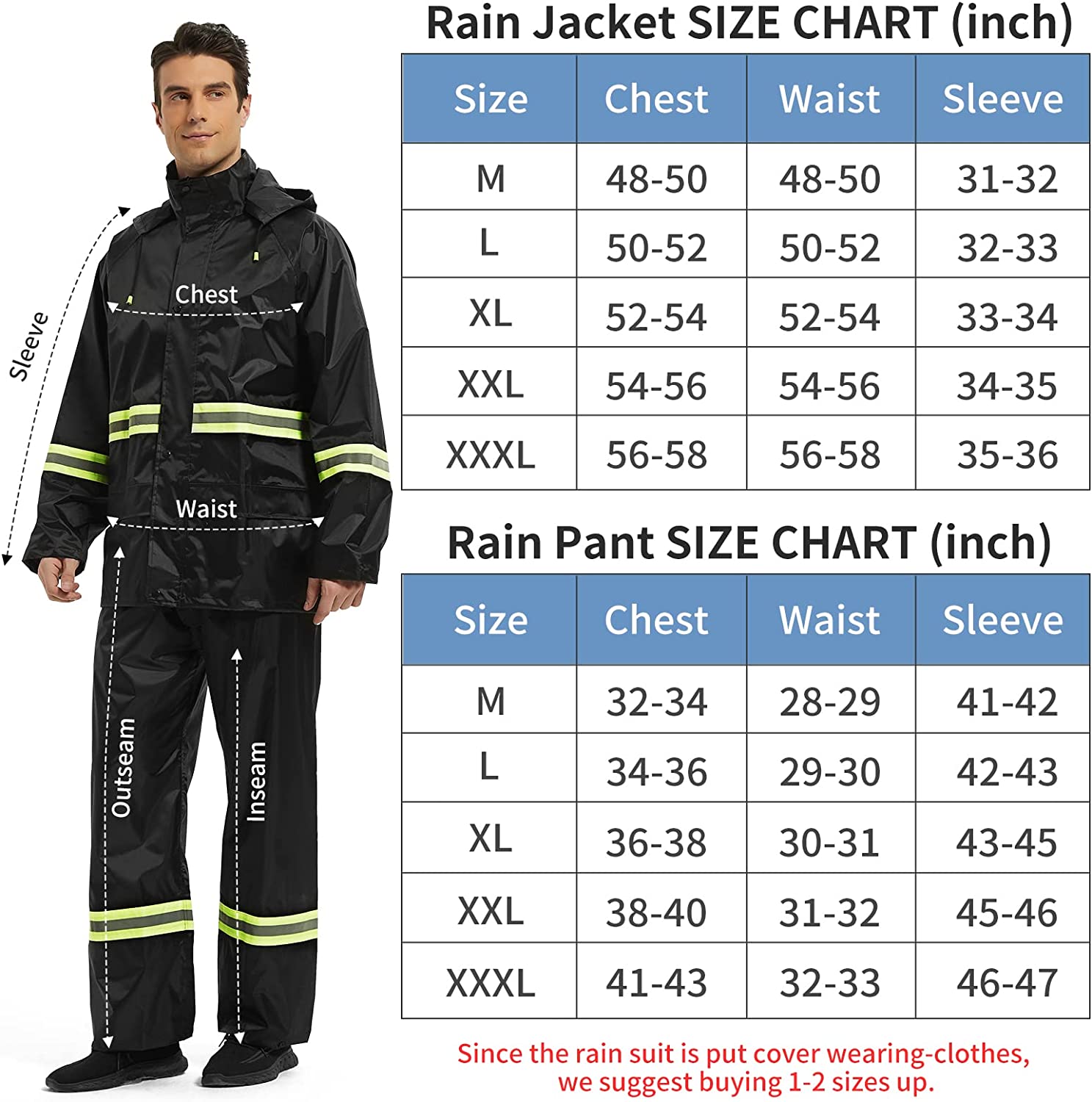 Rain Suits for Men Women Waterproof, Breathable Rain Coats with Eye-Catching Reflective Strip, Durable Rain Gear Jacket Pants