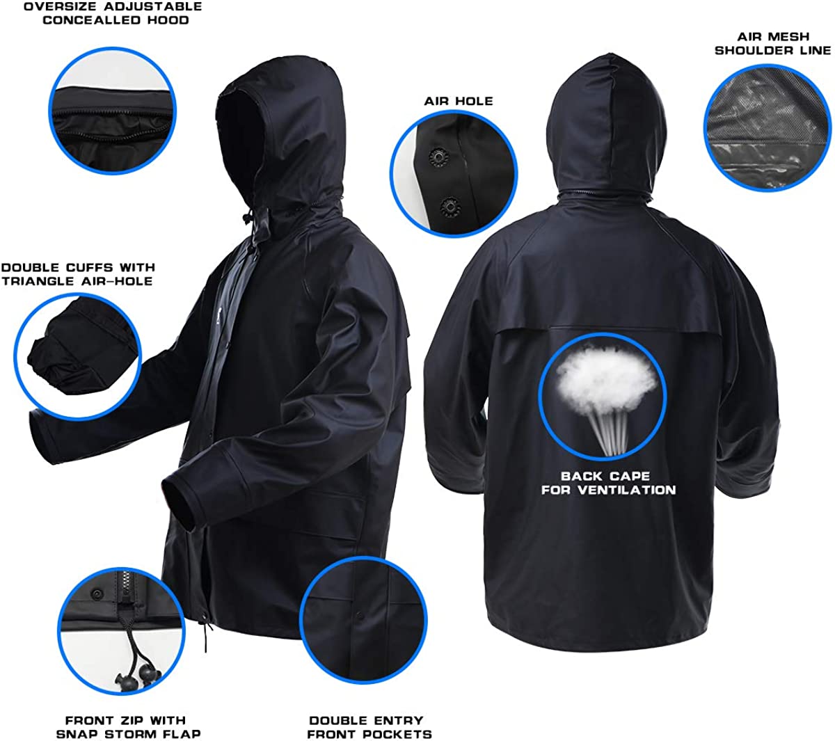RainRider Rain Suits for Men Women Waterproof Heavy Duty Raincoat Fishing Rain Gear Jacket and Pants Hideaway Hood