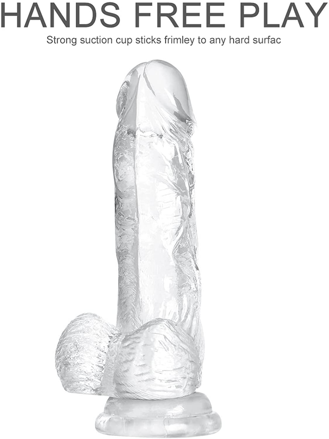 Realistic Dildo with Suction Cup, 7.5 Inch Clear Transparent Huge Dildo for Hands-Free Play, G Spot Stimulator Anal Butt Plug Sex Toys-Adult Sex Toy for Women Men