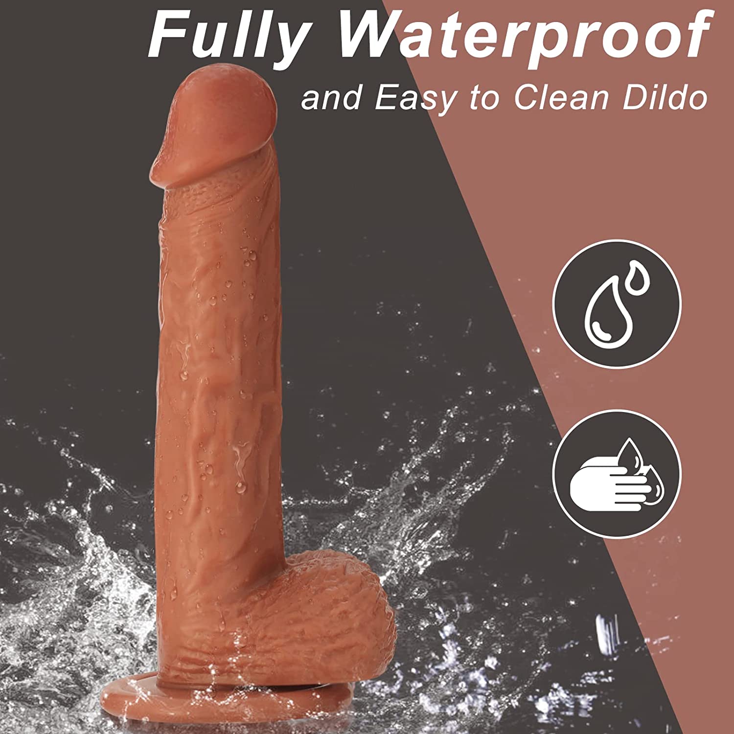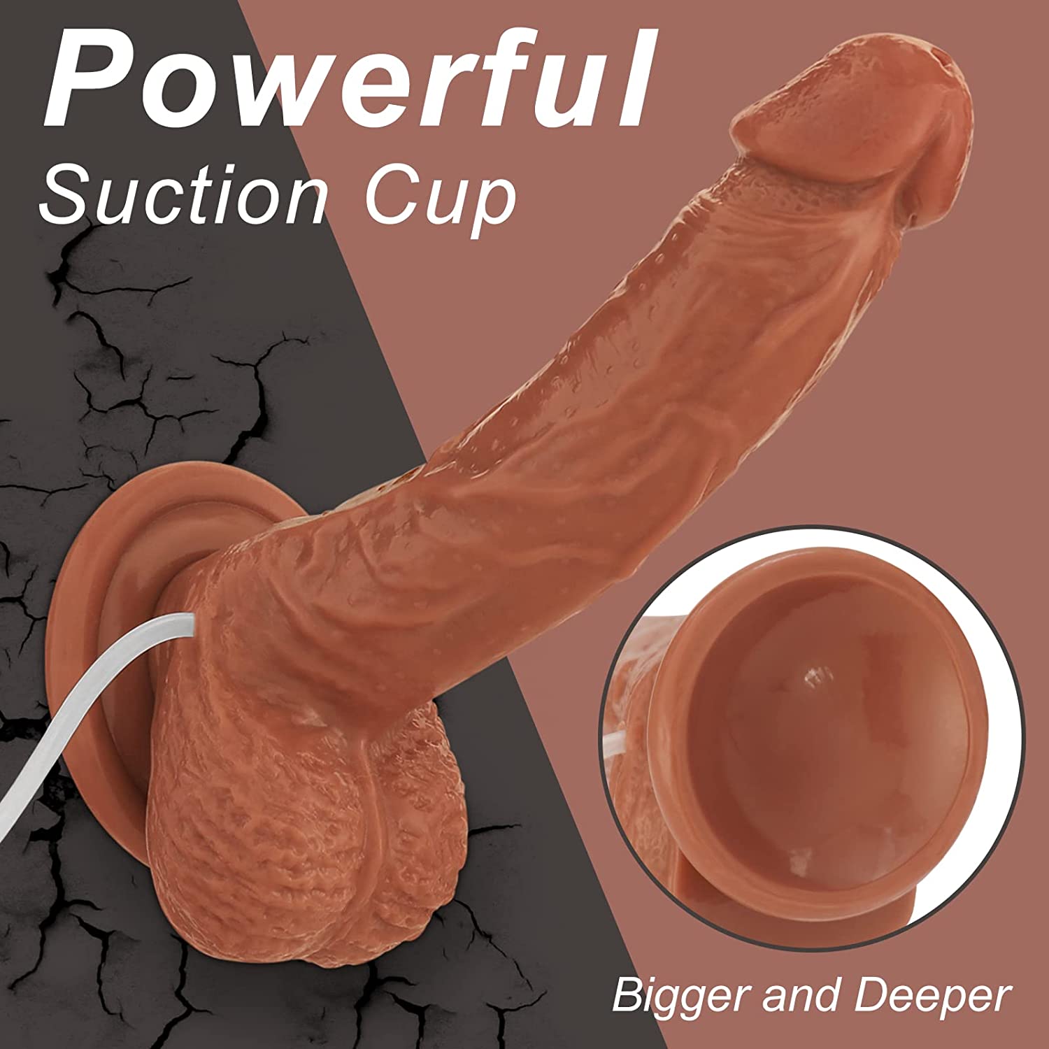 Realistic Squirting Dildo Ejaculating Penis for Beginners with Strong Suction Cup for Hands-Free Play,Soft Dildo with Curved Shaft and Balls for Women G-Spot and Anal Prostate Play 8.07 inch