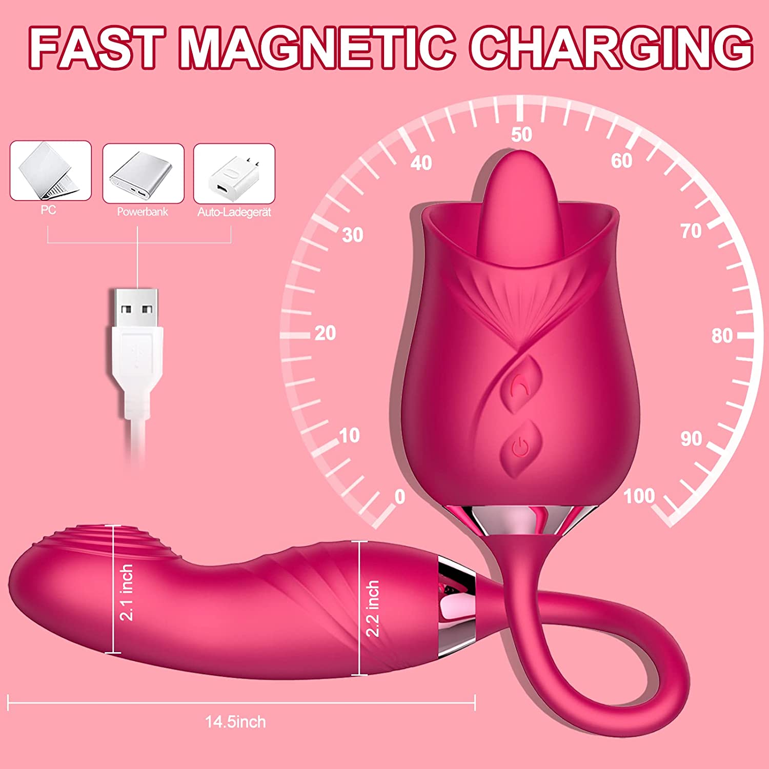 Rose Toy for Woman - Tongue Licking Vibrator Wiggly Dildo Sex Toys with 20 Modes, Oral Sex Toy Clitoris Nipple Sex Stimulator with Butt Plug Sex Toys for Women Couples, Red