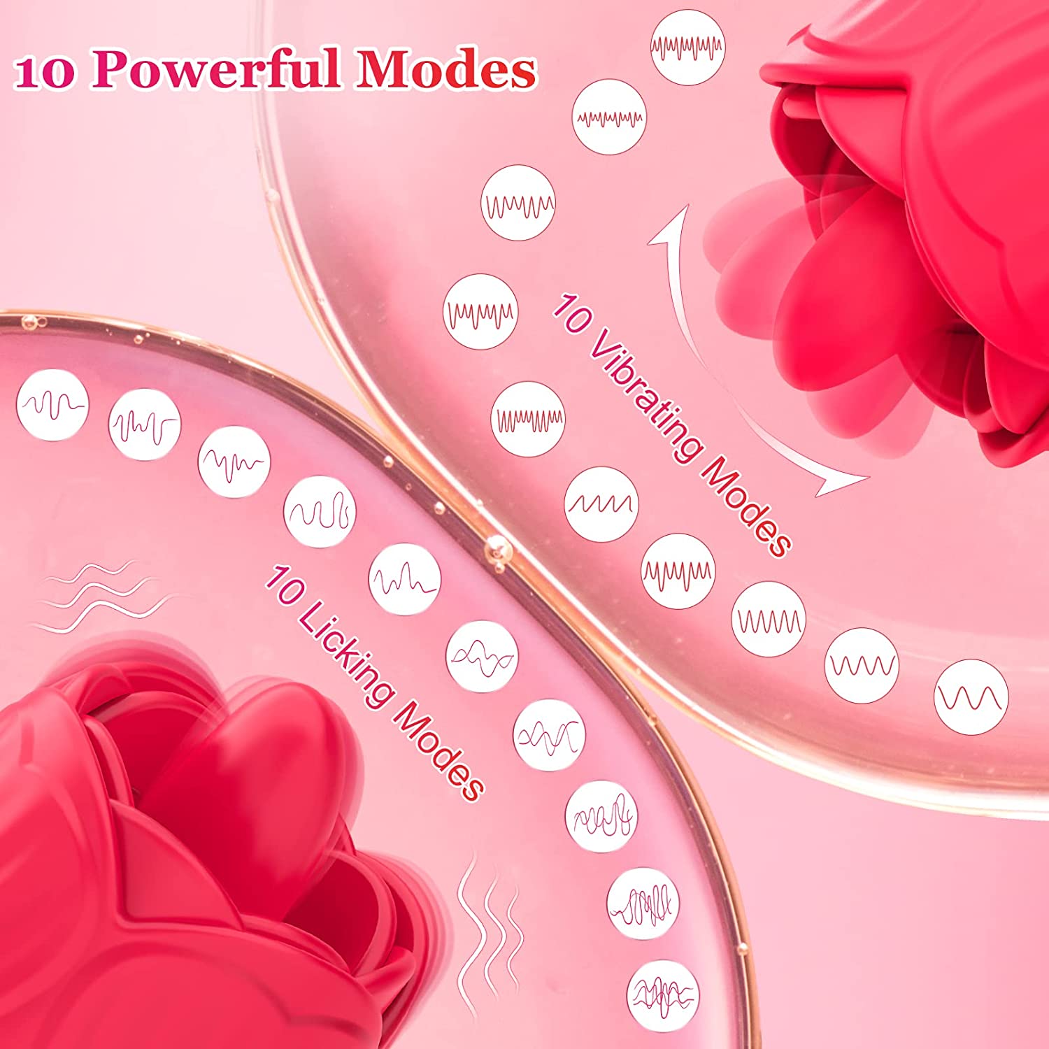 Rose Toy Vibrator for Women, Clitoral Licking Tongue Vibrator, Clitoris Nipples Anal Stimulator with 10 Licking 10 Vibration Modes, Waterproof Rechargeable Adult Sensory Sex Toys for Women Couples