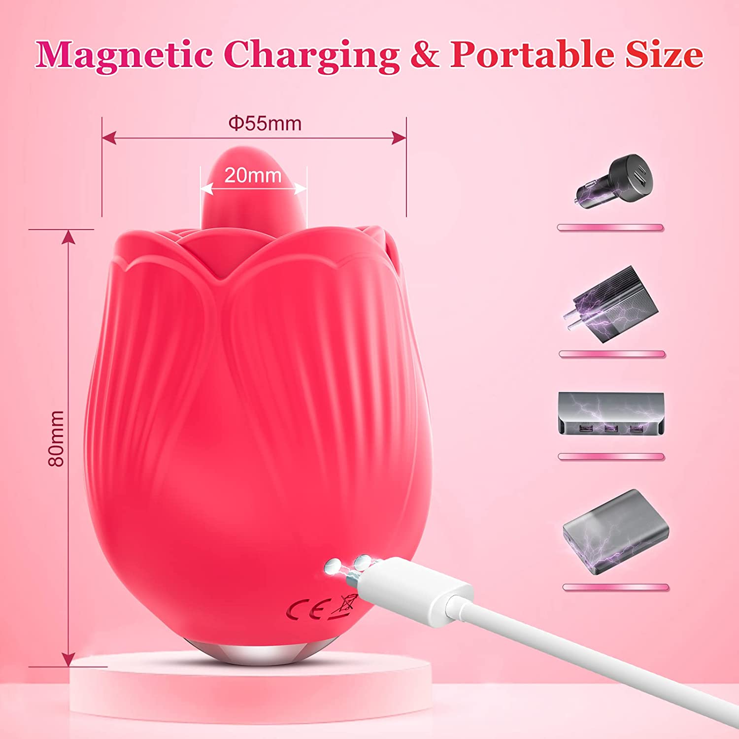 Rose Toy Vibrator for Women, Clitoral Licking Tongue Vibrator, Clitoris Nipples Anal Stimulator with 10 Licking 10 Vibration Modes, Waterproof Rechargeable Adult Sensory Sex Toys for Women Couples