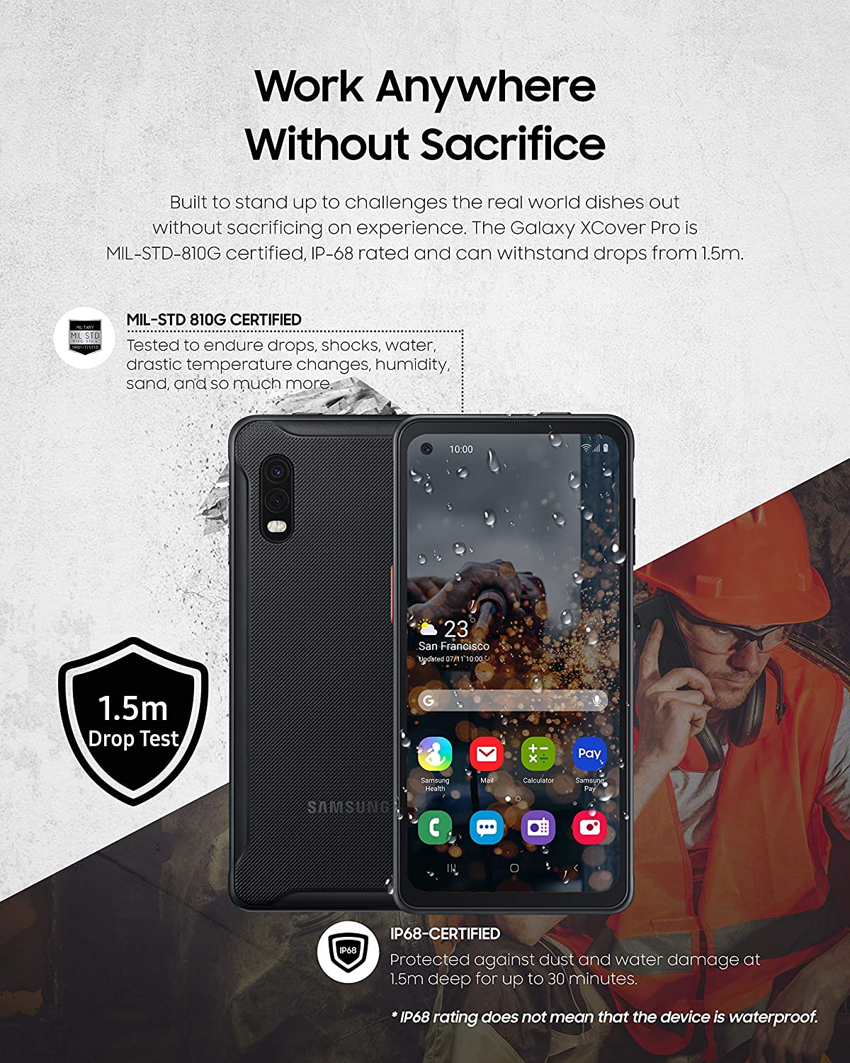 Samsung Electronics Galaxy 4G LTE Xcover PRO Rugged (IP Rated) Unlocked (Verizon & AT&T) | Dual Sim | US Version (2022 Model) |64GB of Storage |US Warranty | Black - SM-G715UZKFXAA