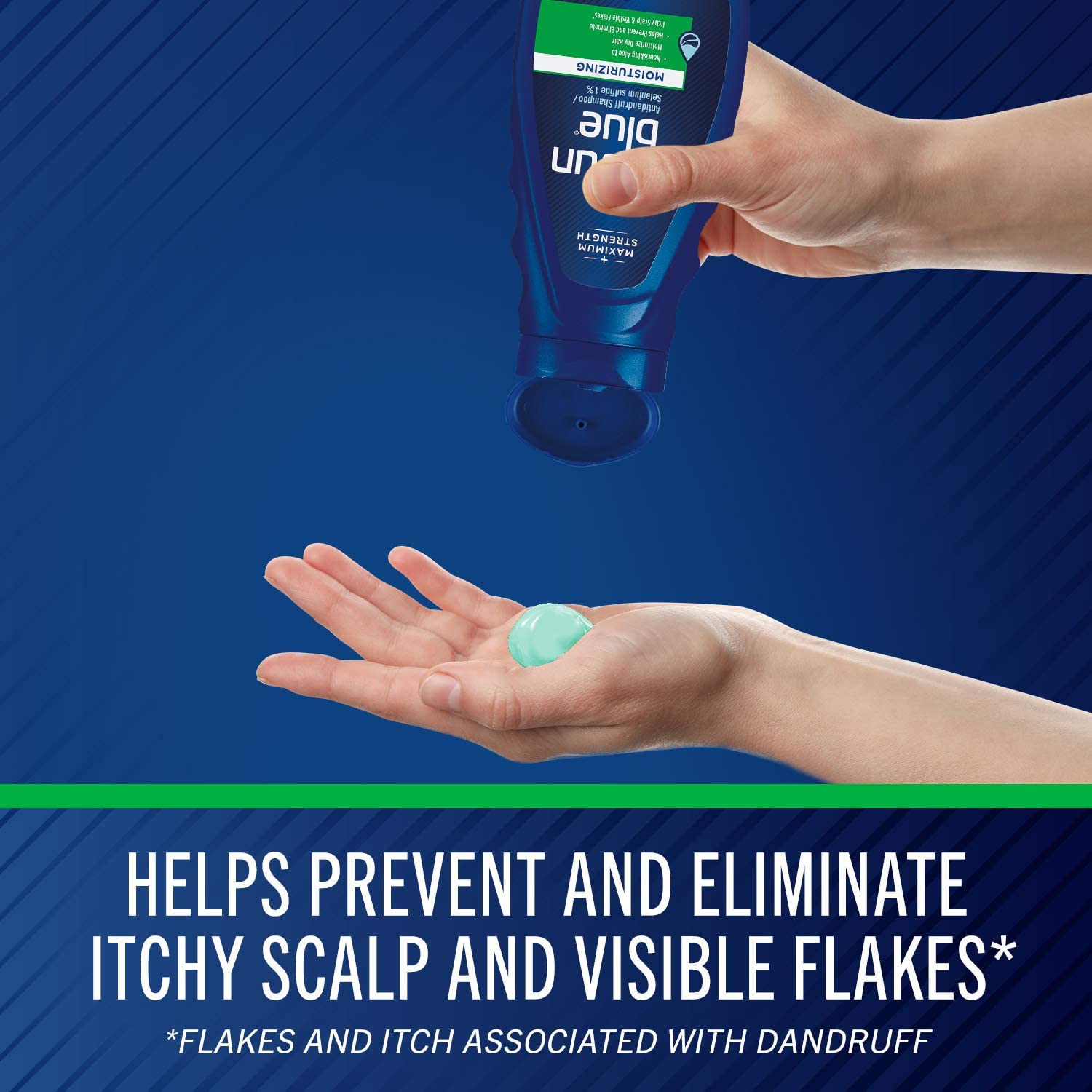 When your itchy, dry dandruff scalp and hair need moisture and relief, choose Selsun Blue Moisturizing Anti-dandruff Shampoo with Aloe. It's tough on dandruff like you expect from Selsun blue with the extra benefit of aloe to moisturize dry hair. Selsun Blue Moisturizing anti-dandruff shampoo is a maximum strength formula with 1% selenium sulfide as the active ingredient to help prevent and eliminate itchy scalp and visible flakes associated with dandruff. Directions for Use: Shake well. Wet hair, massage onto scalp, rinse. Repeat if desired. For best results, use at least twice a week or as directed by a doctor. About Selsun Blue: Selsun Blue is the expert in scalp health, offering high-quality, effective solutions that are tough on dandruff and great for hair to help you feel confident, poised and in control. Selsun Blue helps control dandruff by powerfully relieving symptoms like flaking and itching. Say "goodbye" to flakes and ditch your dandruff with Selsun Blue!