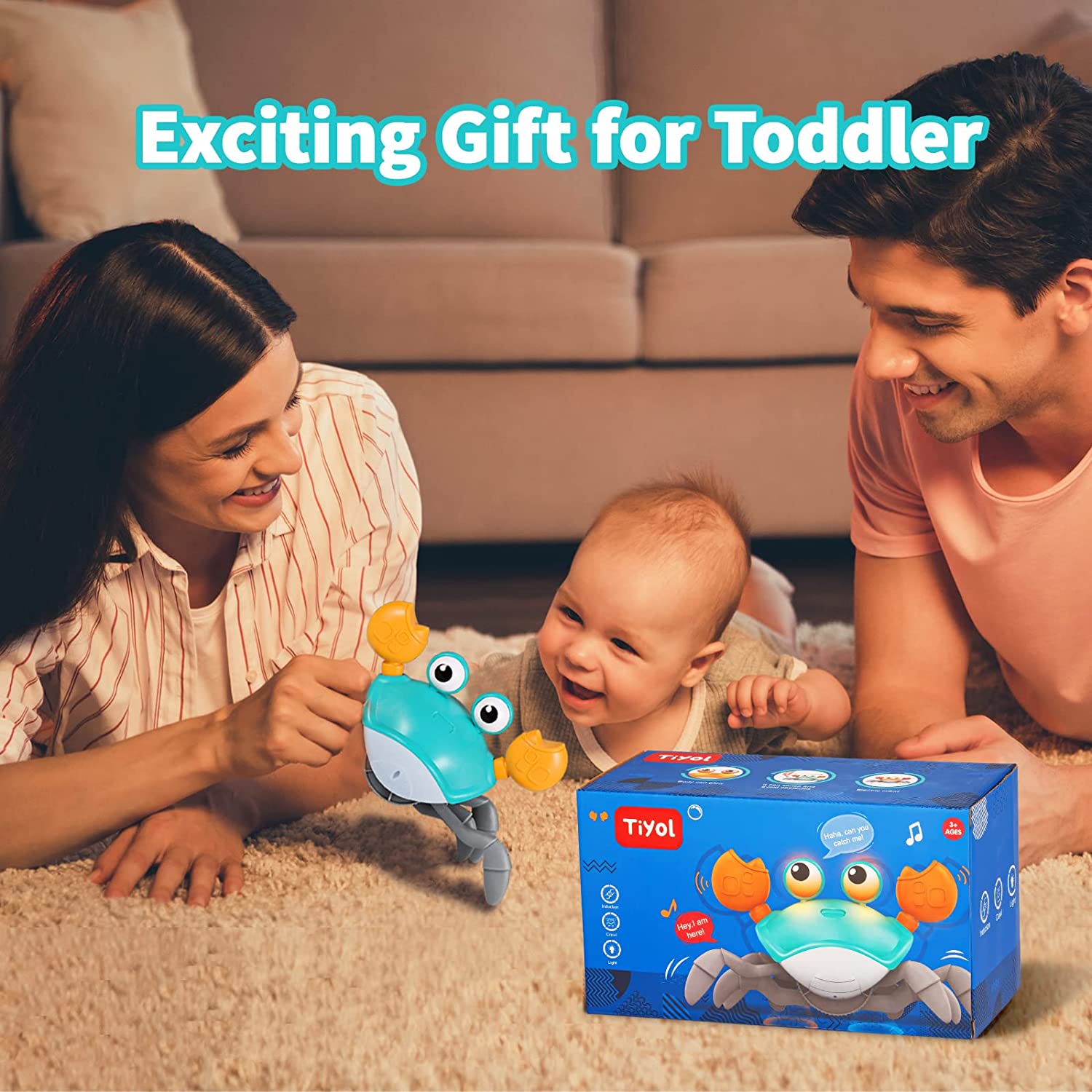 Sensing Crawling Crab, Tummy Time Baby Toys, Interactive Walking Dancing Toy with Music Sounds & Lights, Newborn Infant Fun Birthday Gift Toddler Boy Girl, USB Charging Cable Included (Green)