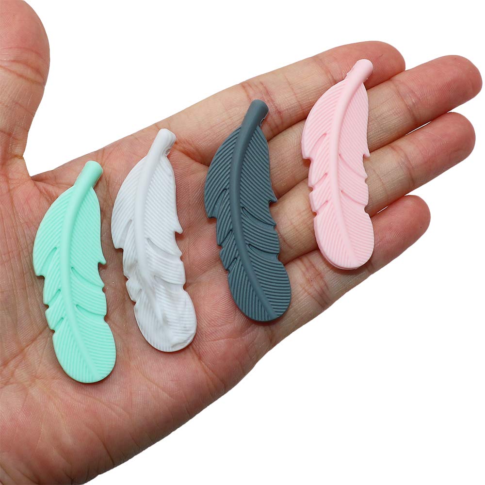 Sensory Chew Necklace for Kids, Boys and Girls, 4 Pack Silicone Feather Chewy Necklaces for Autism, ADHD, Chewing, Biting, Oral Motor Chewable Pendant for Mild Chewers
