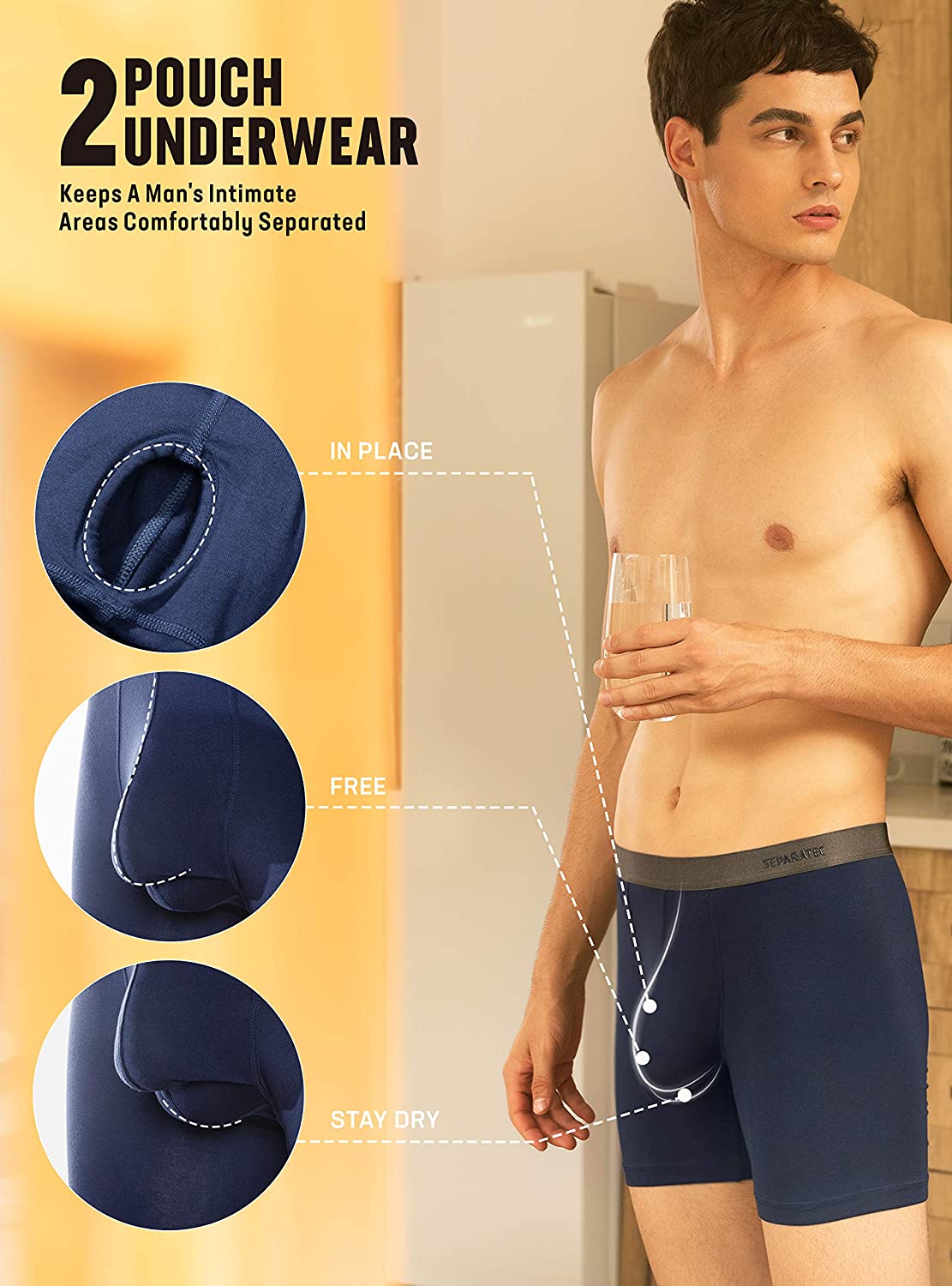 Separatec Men's Underwear 3 Pack Basic Bamboo Rayon Soft Breathable Dual Pouch Boxer Briefs