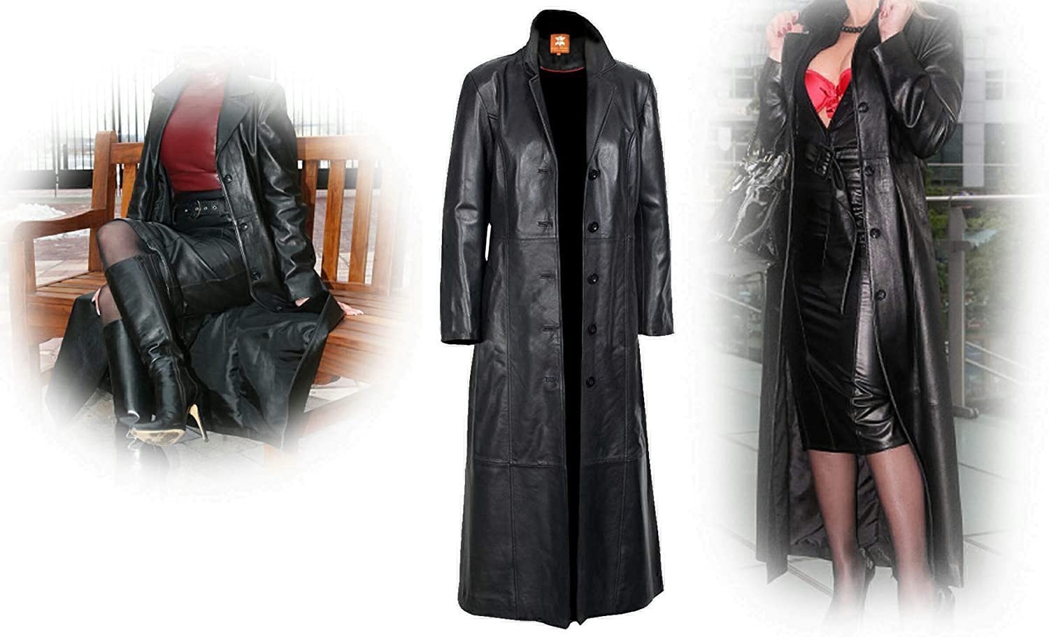 Sheepskin, Women's Long coat Black Glossy Original Leather, for sale on Amazon