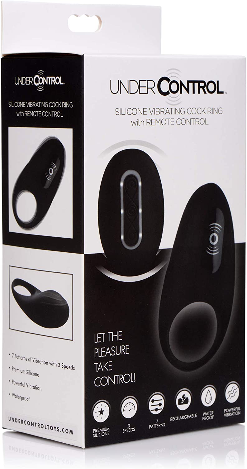 Give your package some added power! A powerful motor within this stretchy cock ring will thrum against your shaft, balls, or perineum, depending on how you wear it. Use it during sex with a partner to treat them to the vibration! Whether you appreciate the convenience during solo play, or the power during couples play, the wireless remote is an exciting feature for use at home or out on the town... with a 30 foot range! Separate buttons allow you to move back and forth between 3 speeds and 7 patterns of vibration. Let the pleasure take control with this easy-to-use, remote-controlled male pleasure tool. Made of premium silicone, it is phthalate-free for body safety, and non-porous for thorough sanitization. Clean this waterproof device after use with warm water and mild soap or toy cleaner. Measurements: 3.5 inches in total length. Unstretched ring is 1.25 inches in diameter. Vibrator portion is 2.3 inches in length, 1.8 inches in width. Remote is 2.2 inches in length, 1.4 inches in width. Material: Silicone. Color: Black. Note: Instructions included. Charges via USB. Remote requires 1-CR2032 cell battery, included.