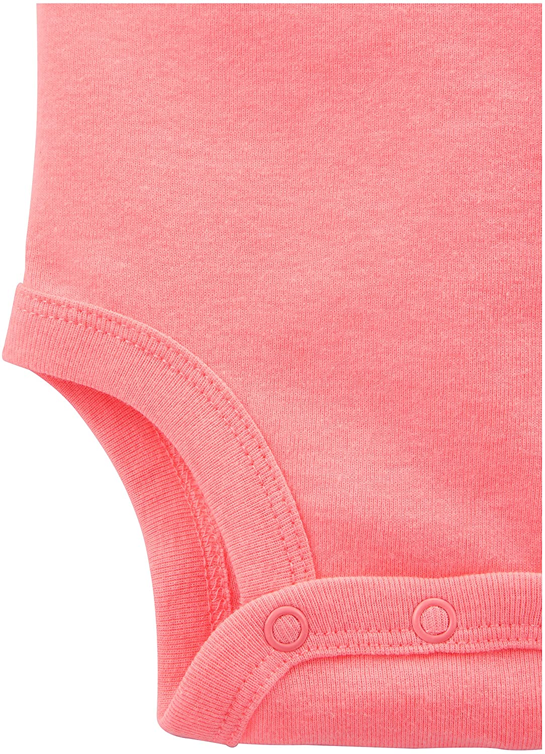 An Amazon Brand - Six short-sleeve bodysuits in baby-soft cotton featuring patterns, appliques, and stripes.