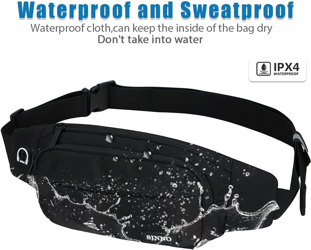 SINNO Large Fanny Pack With 4-Zipper Pockets for Running Hiking Travel Workout Dog Walking Outdoors Sport Fishing Waist Pack Bag