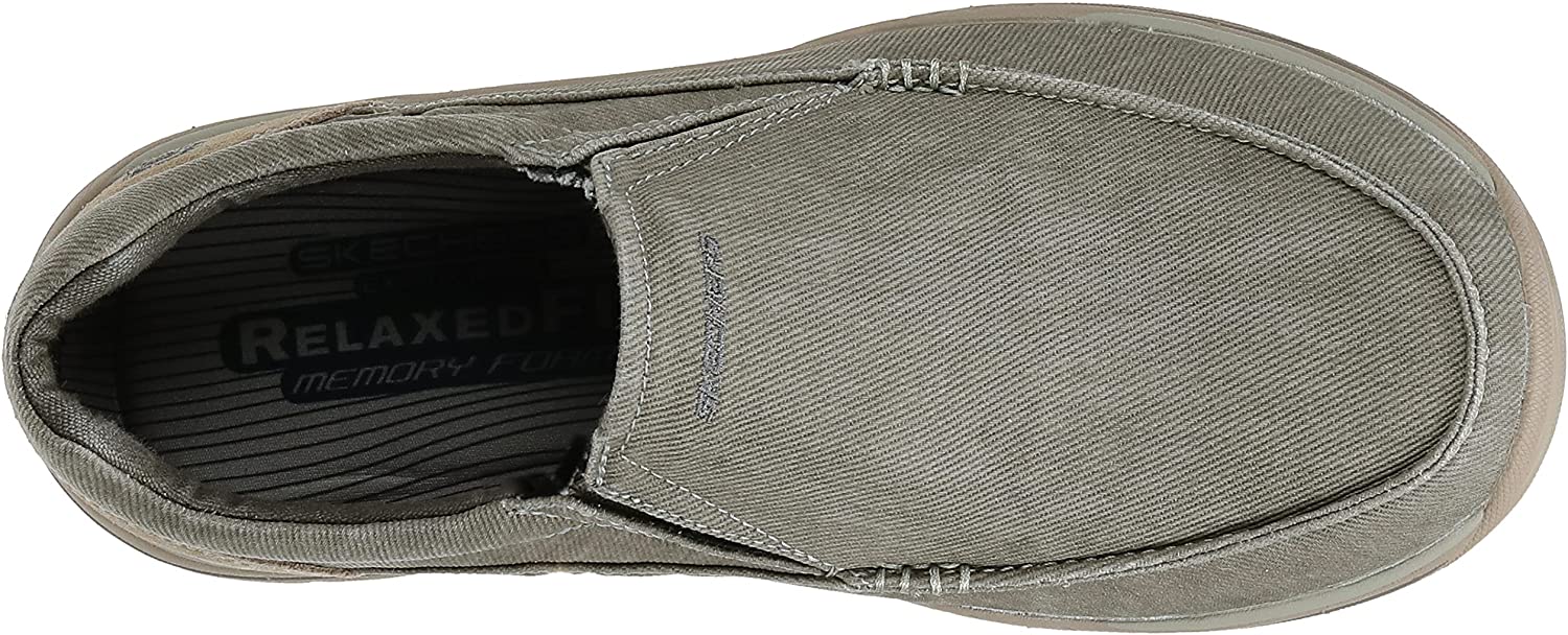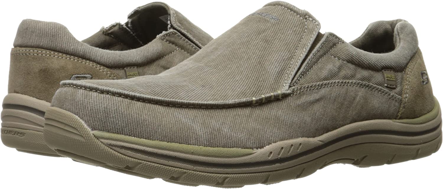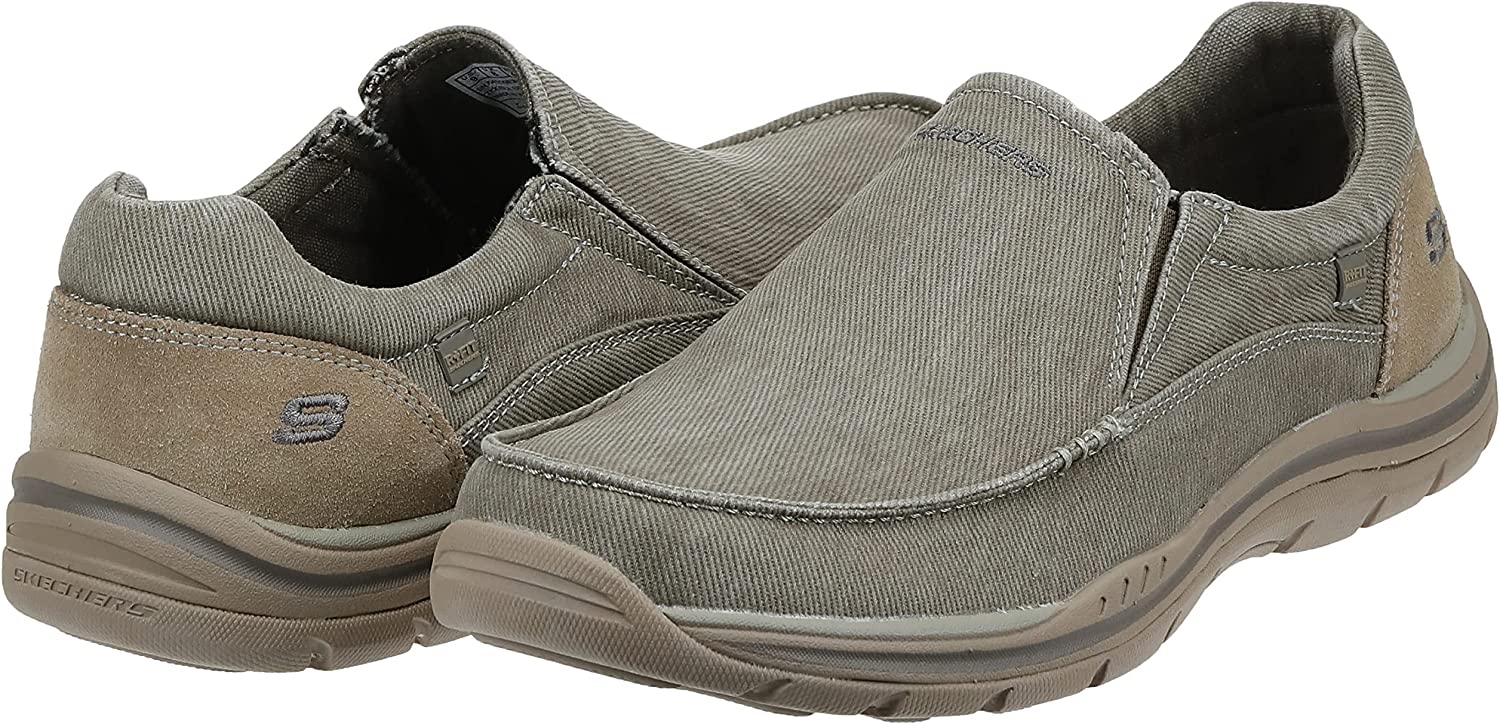 The SKECHERS Expected - Avillo casual slip-on sneaker features a breathable canvas upper and plush memory foam footbed. Relaxed Fit design provides a roomy, comfortable fit. Memory Foam insole provides incredible all-day comfort and support. Side goring for easy wear. Soft man-made lining and a padded collar provide a ventilated environment for your feet. Shock-absorbing midsole. Durable rubber outsole with high-grip sections for added traction.