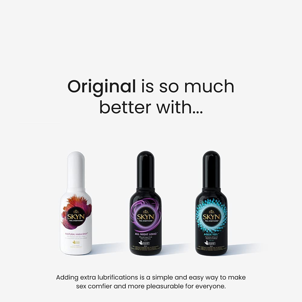 SKYN Premium Polyisoprene Lubricated Condoms easily stretch and conform to your shape so that they are comfortable to use. They're also free from allergens, making them a safe choice. These non-latex lubricated condoms feel soft and natural and provide an extraordinary experience.