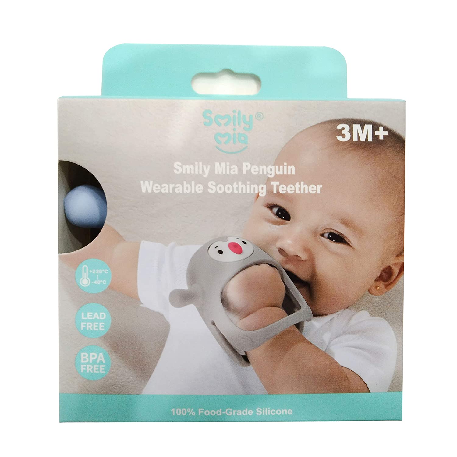 Smily Mia Penguin Buddy Never Drop Silicone Baby Teething Toy for 0-6month Infants, Baby Chew Toys for Sucking Needs, Hand Pacifier for Breast Feeding Babies, Car Seat Toy for New Born,Light Blue