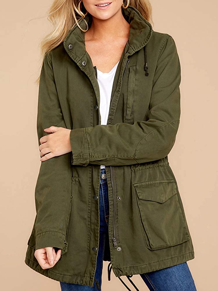 Soulomelody Womens Military Safari Anorak Jacket Hoodies Zip Up Parka Casual Drawstring Coat with Pockets