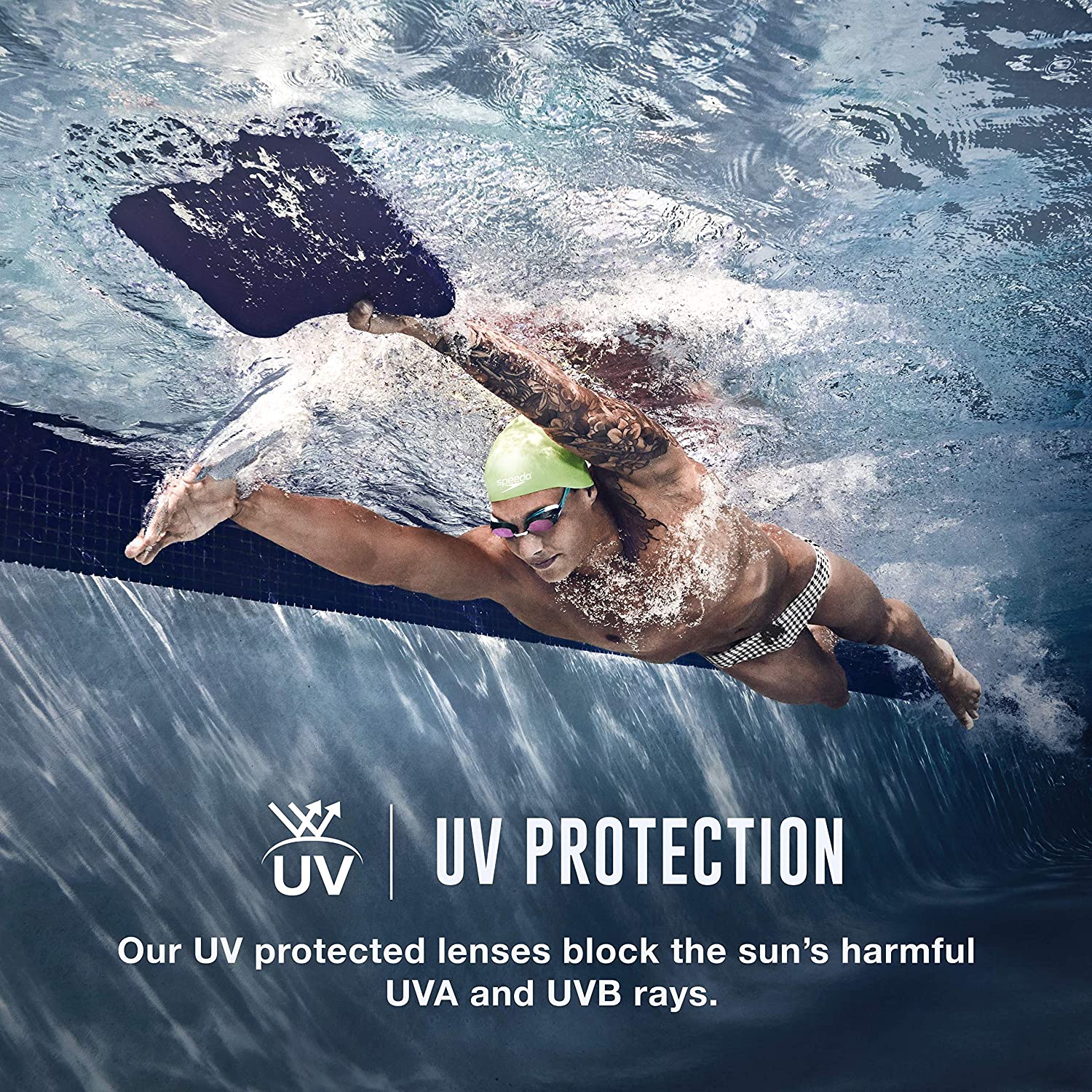 Unchanged classic fit with soft silicone eye seals. Two-tone silicone double headstrap and ergonomic adjustable clip. Mirrored lens coating helps to reduce glare. Features three interchangeable nose pieces. UV protection. Anti-fog. 100% PVC free. Latex free.