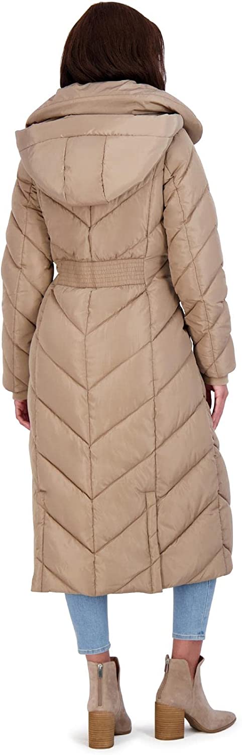Steve Madden Women's Long Chevron Maxi Puffer Coat